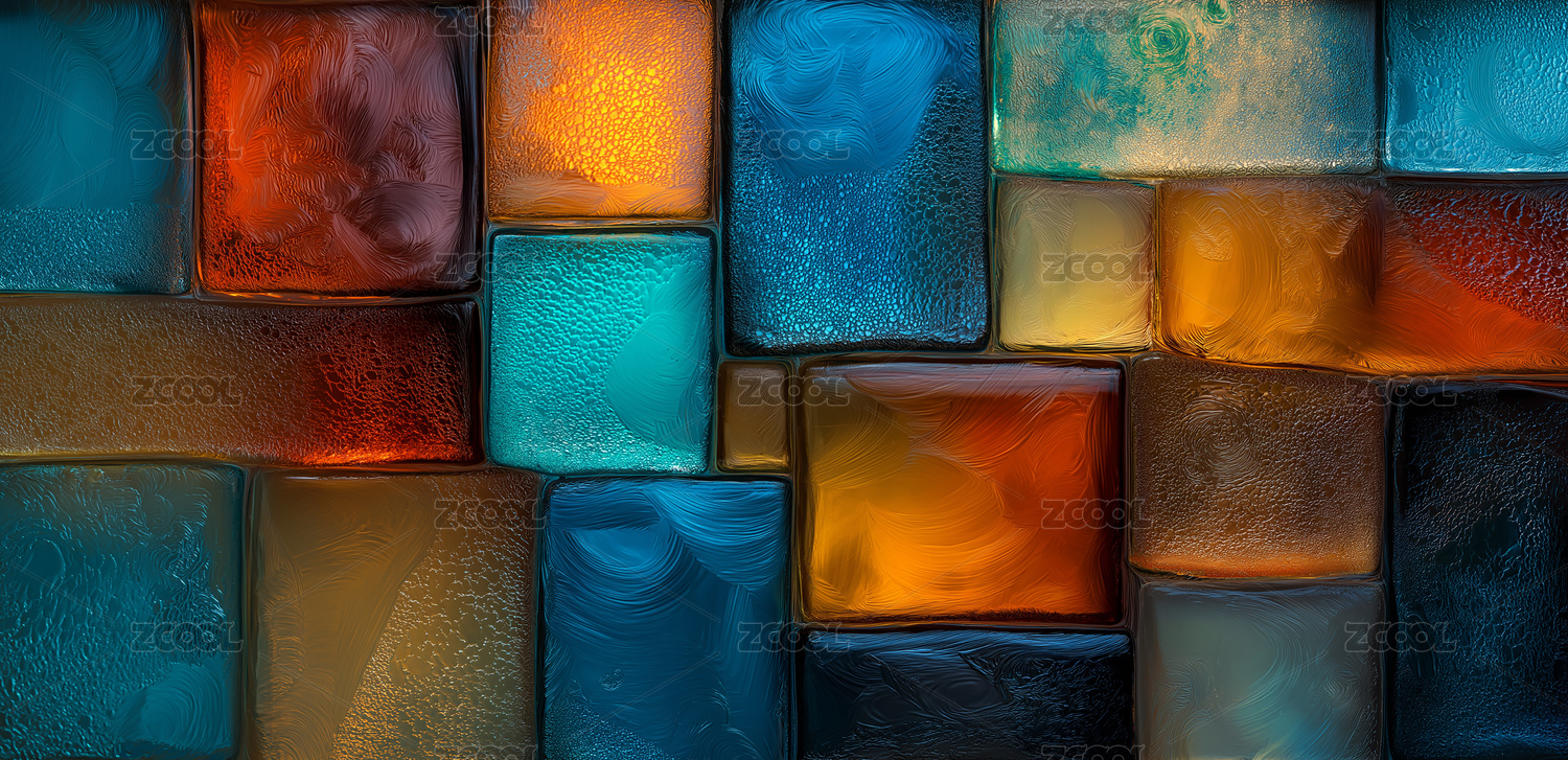 彩色玻璃方块拼接抽象艺术装饰画设计素材