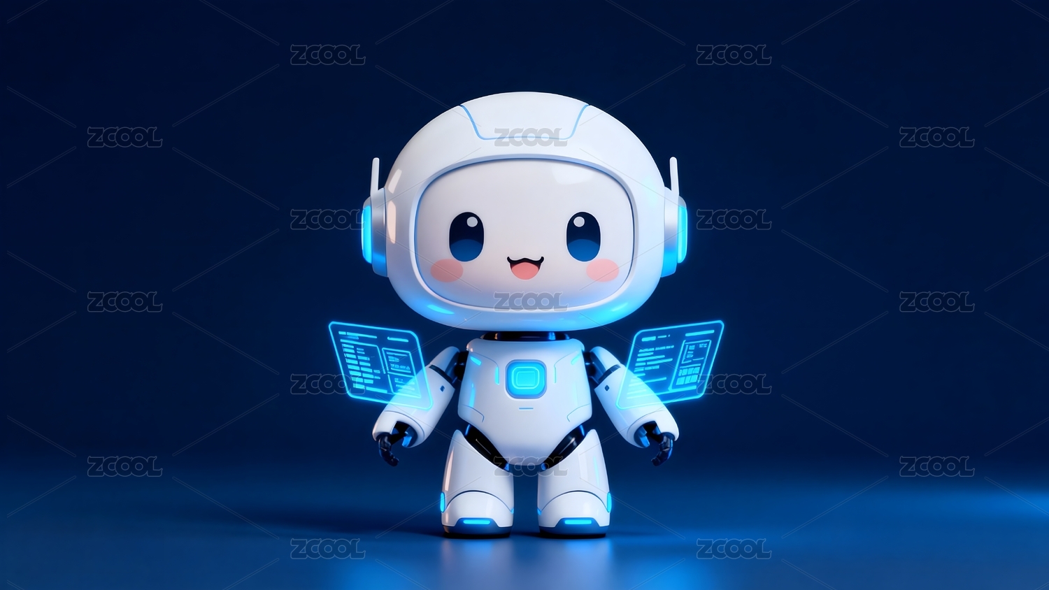 蓝色背景下的可爱机器人形象