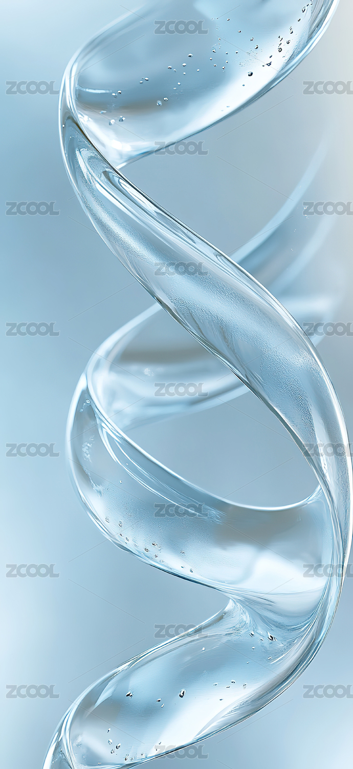 荧光色螺旋缠绕的透明3d彩色流体白底插画