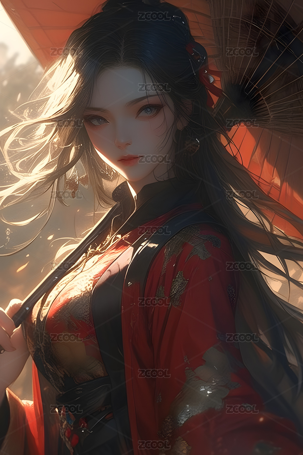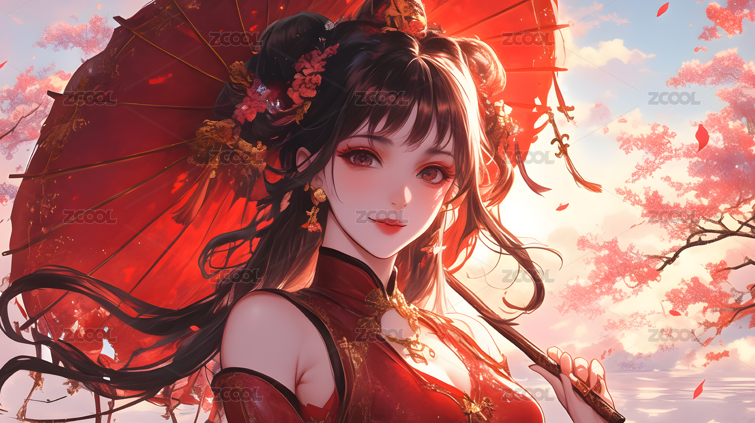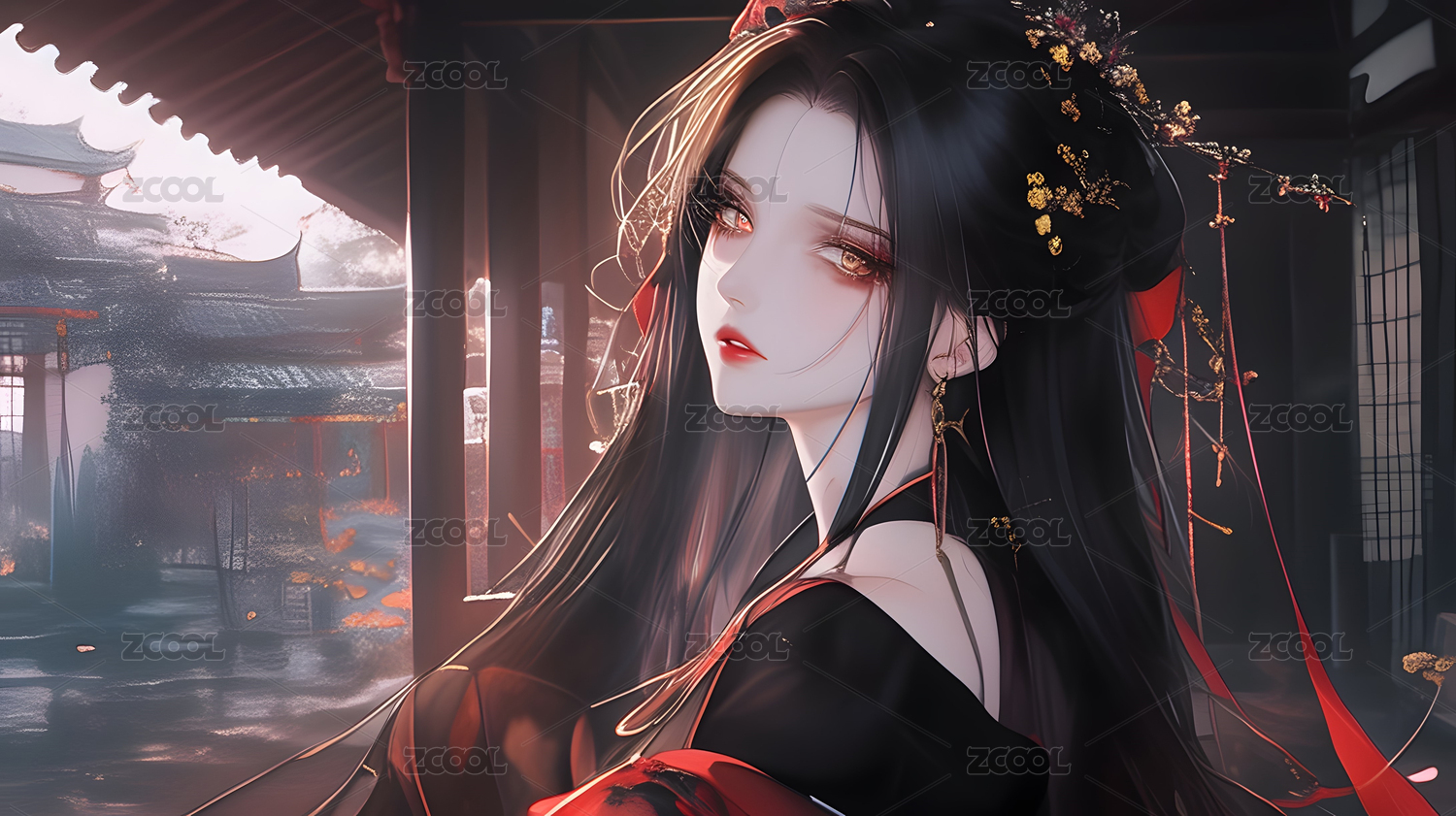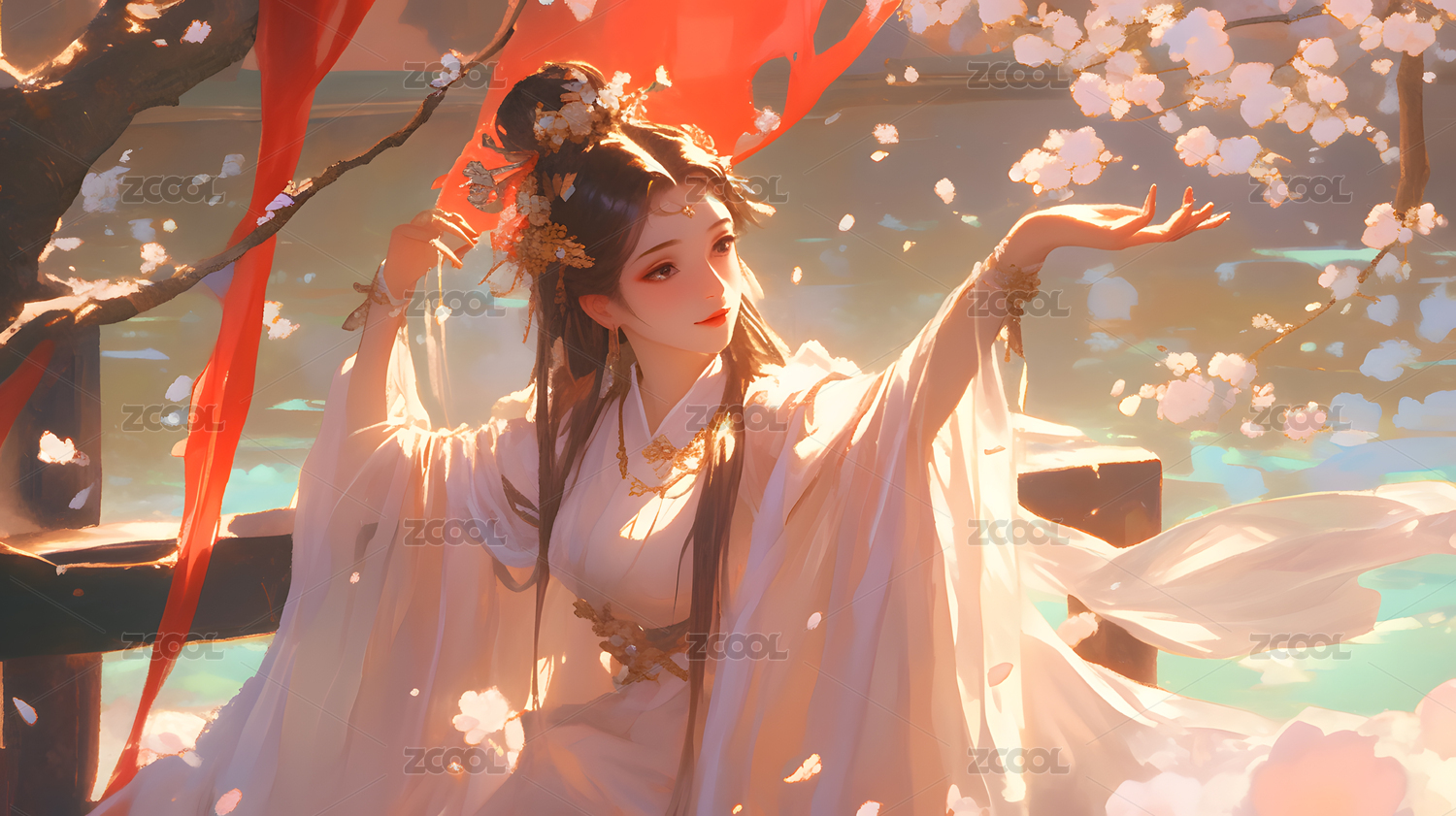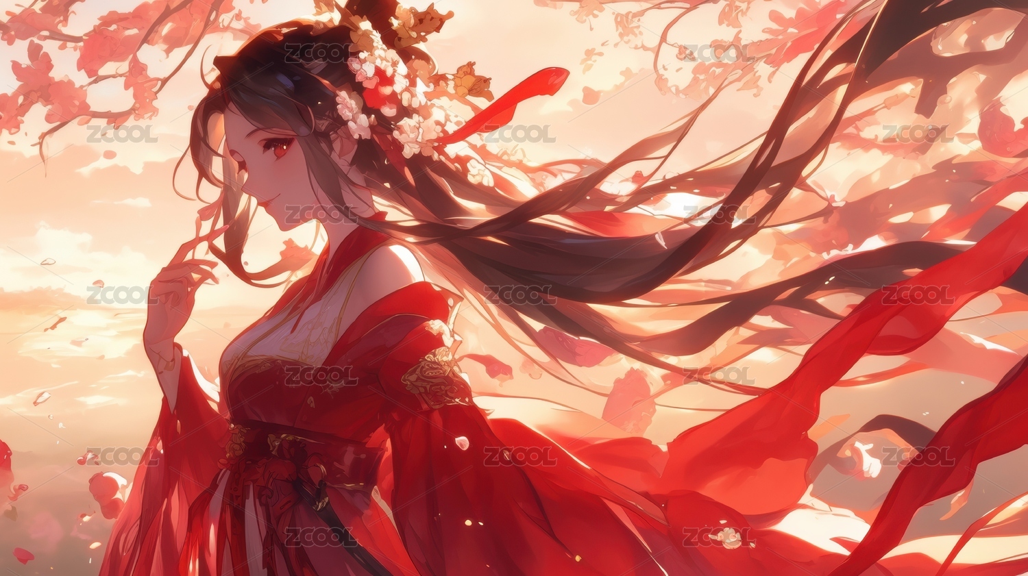 手绘卡通古风身穿传统服饰汉服漂亮女孩插画