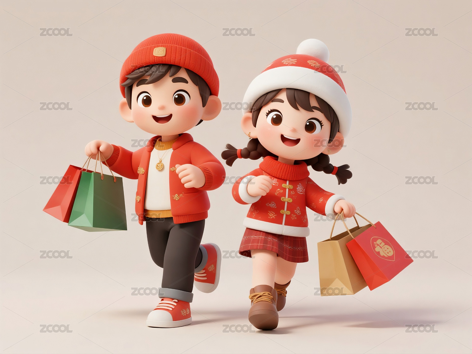 春节三维人物背景