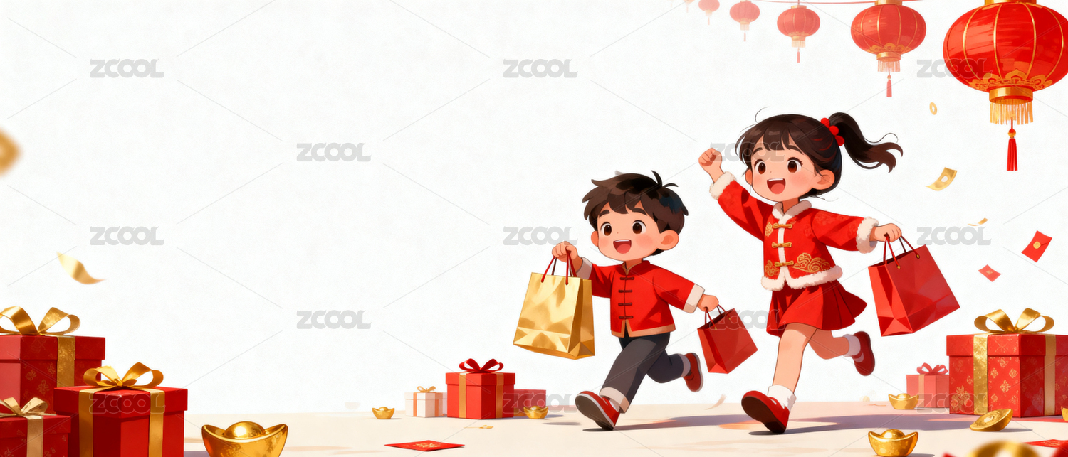 新年孩童提礼袋欢庆场景