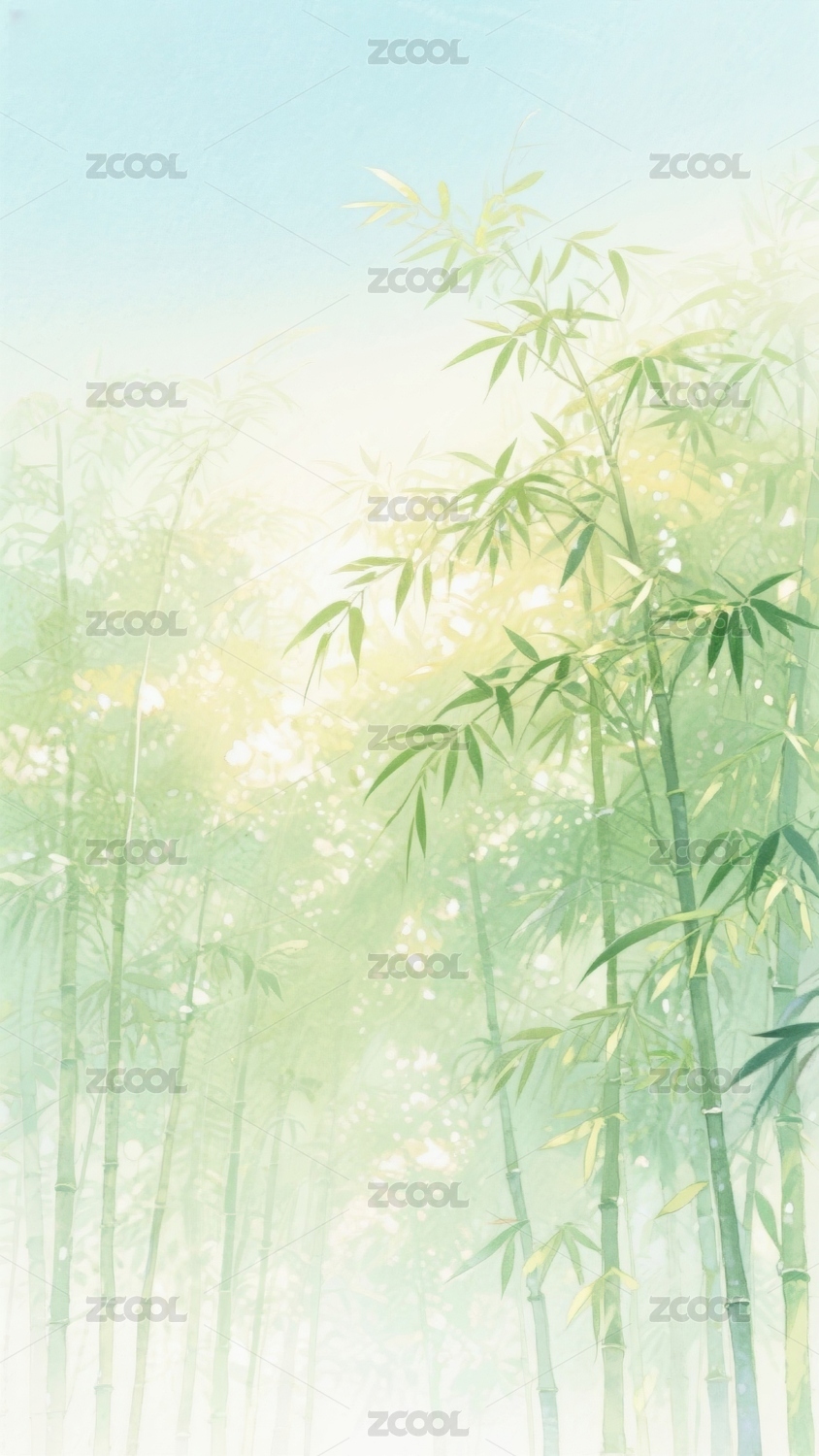 雾霭竹林清新禅意竹林水彩插画