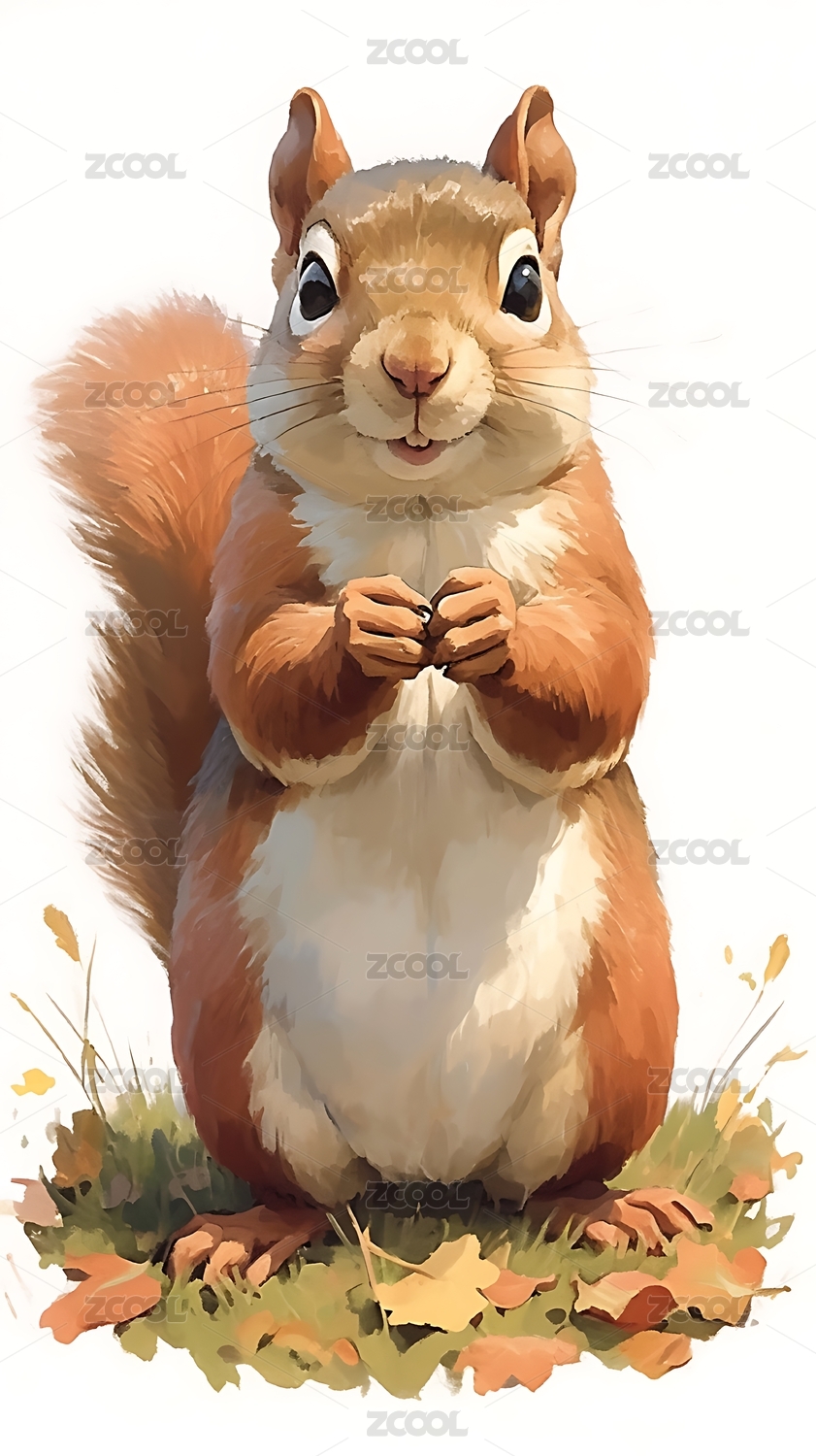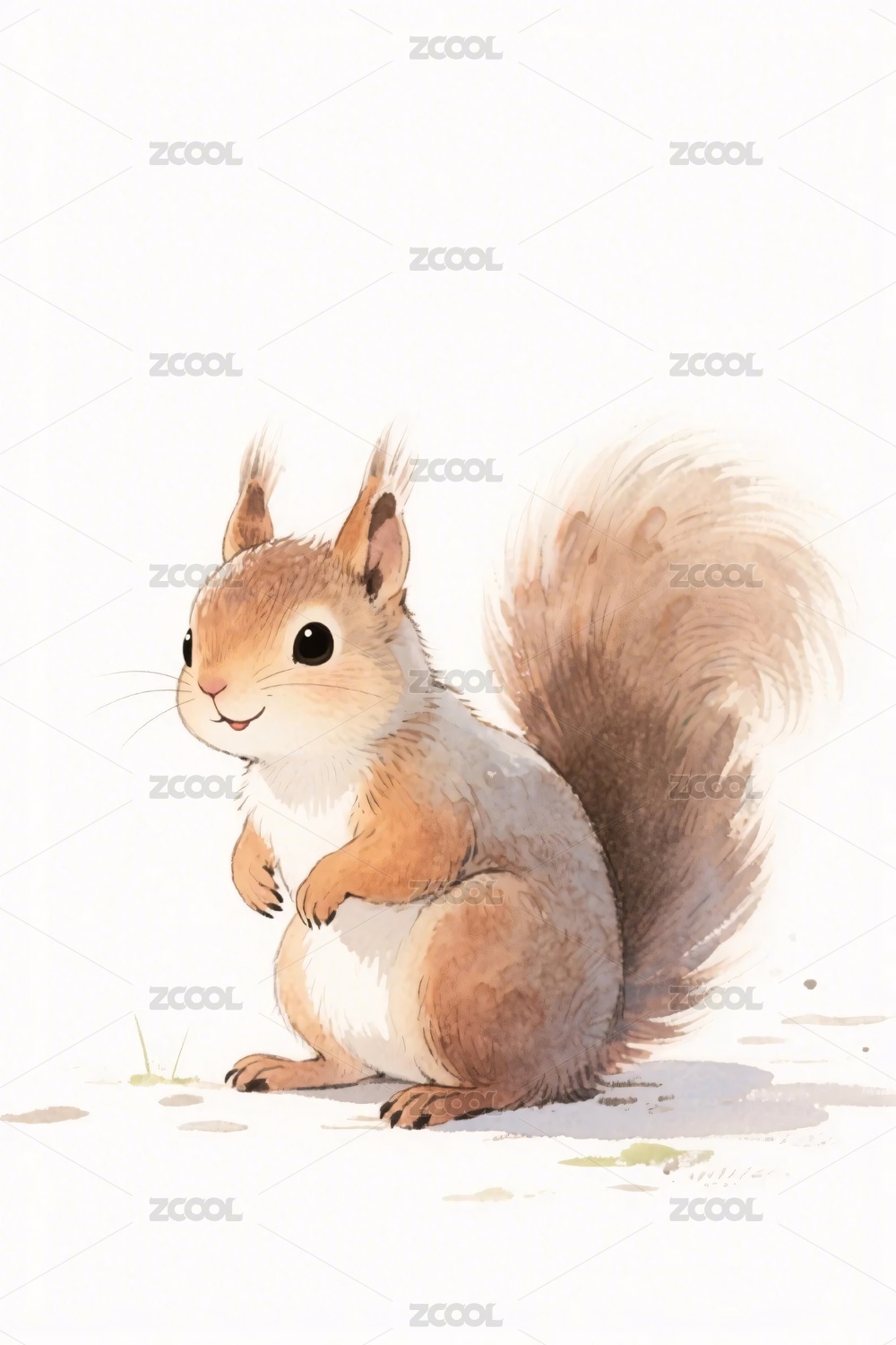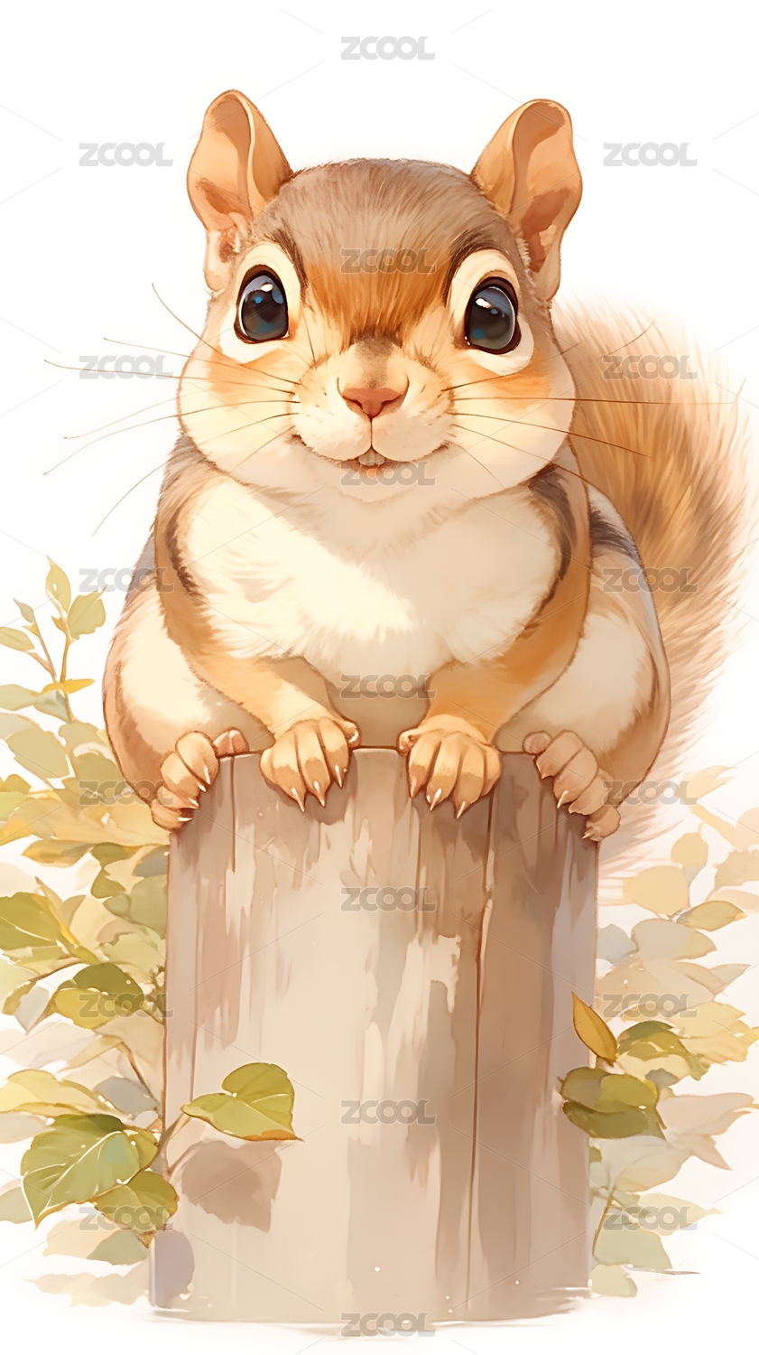 水彩,树枝,户外,卡通,Q版,松鼠,毛绒,草地,金花鼠,可爱