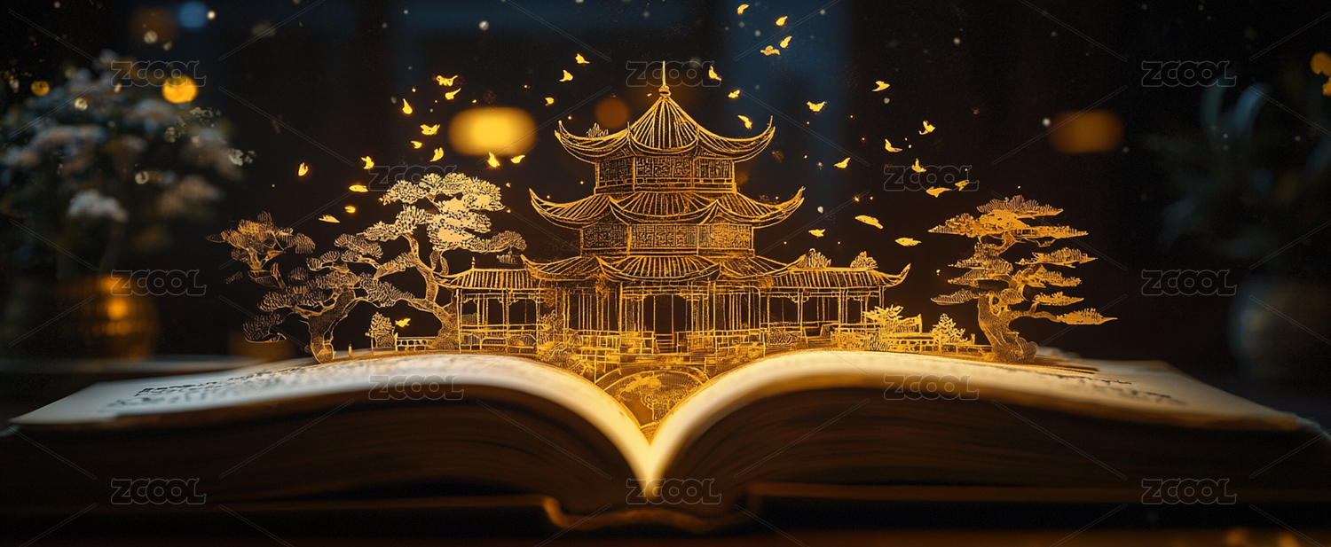 古风,建筑,插画,中国风,背景,剪纸风,古建筑,国风,风景,传统