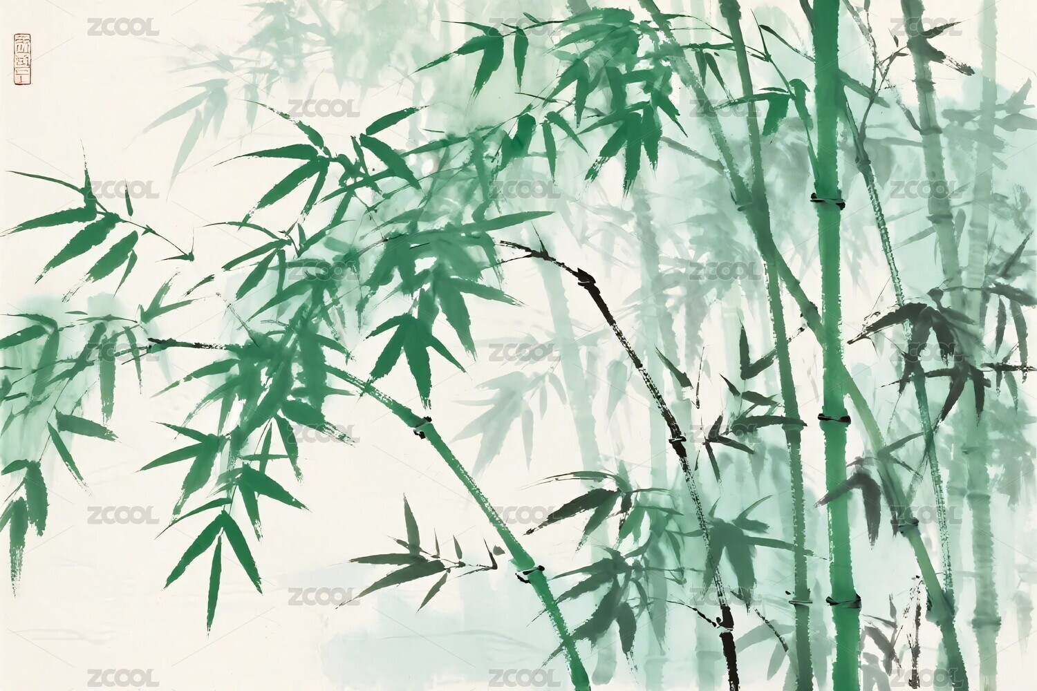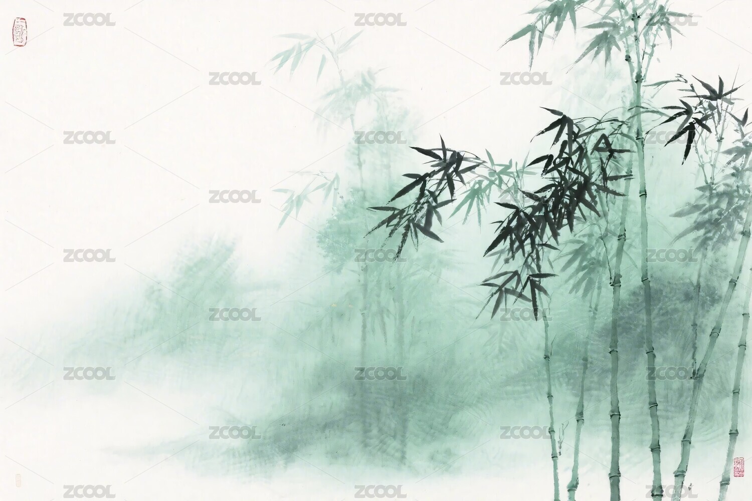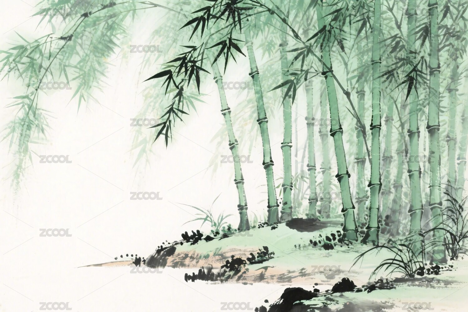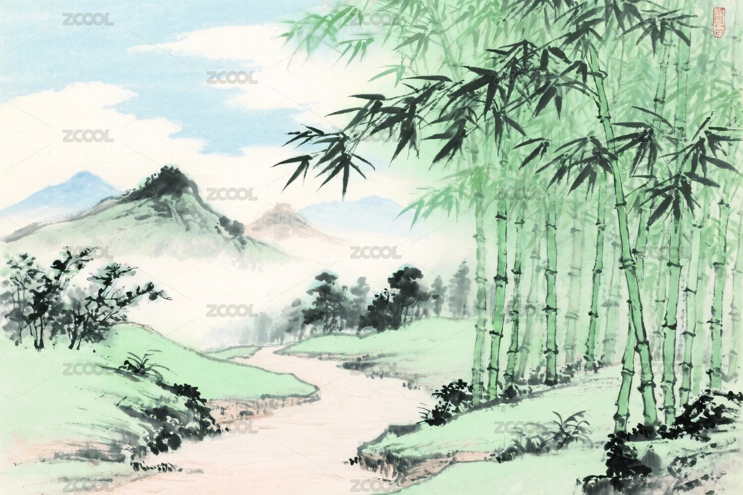 竹林,水墨,插画,国画,竹子,山水,清幽,素雅,静谧,装饰
