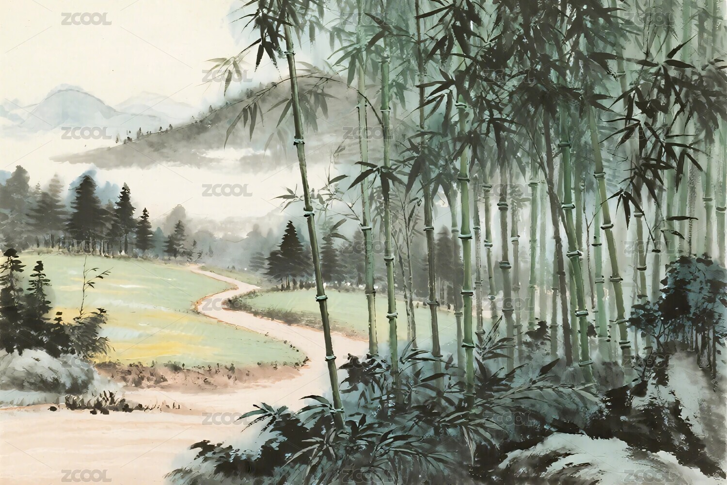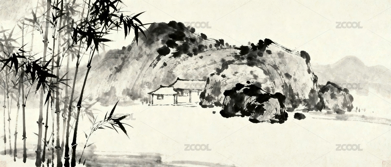 山水,竹子,水墨,国画,中国画,风景,插画,水墨画,山水画,自然