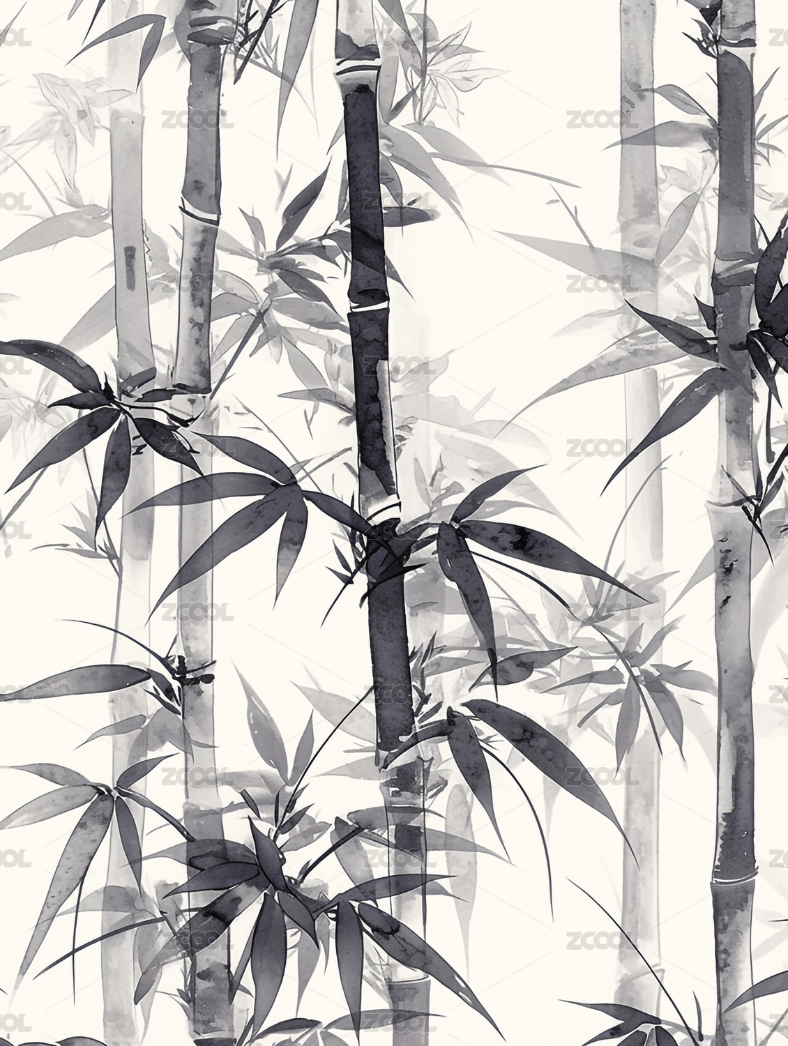 竹子,水墨,黑白,插画,线条,植物,装饰,东方式,国画,装饰画