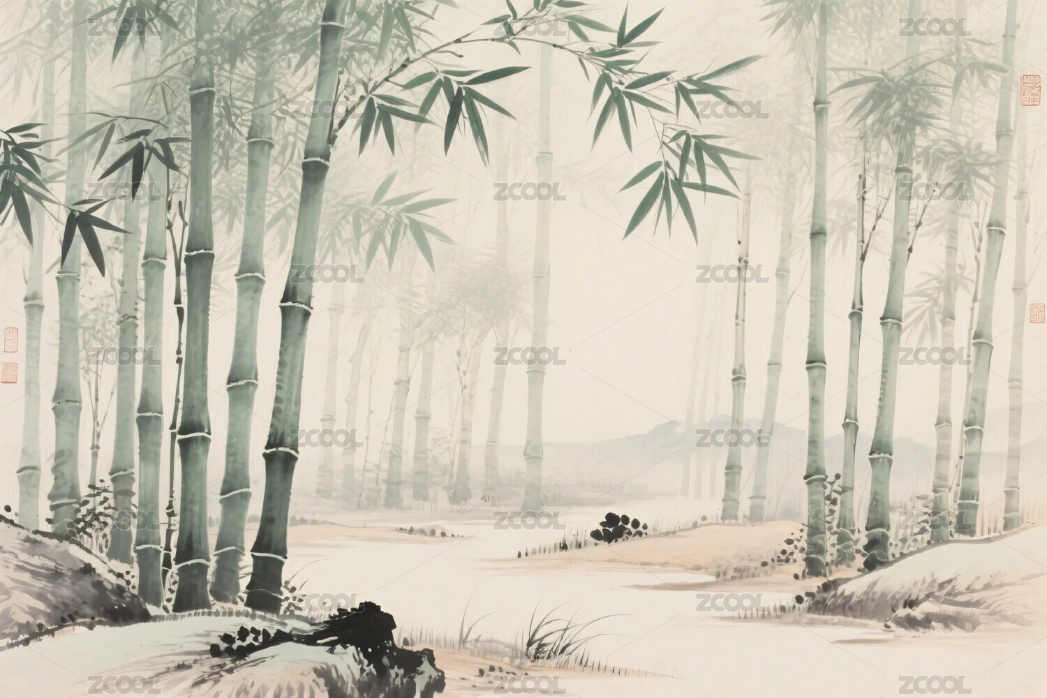 竹林水墨插画