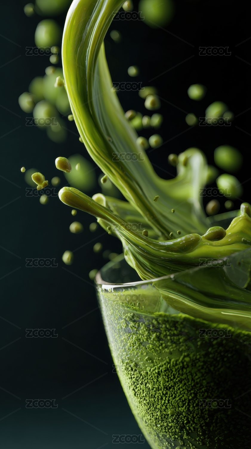 玻璃杯中绿色液体的射孔弹水溅出高清图片