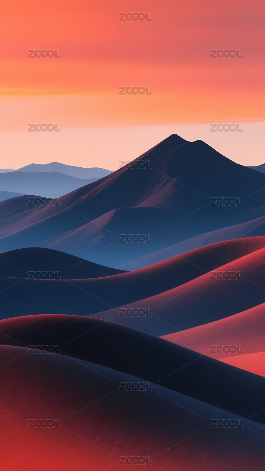 柔和,橙色,蓝色,粉色,沙丘,沙漠,日落,天空,宁静,壮丽