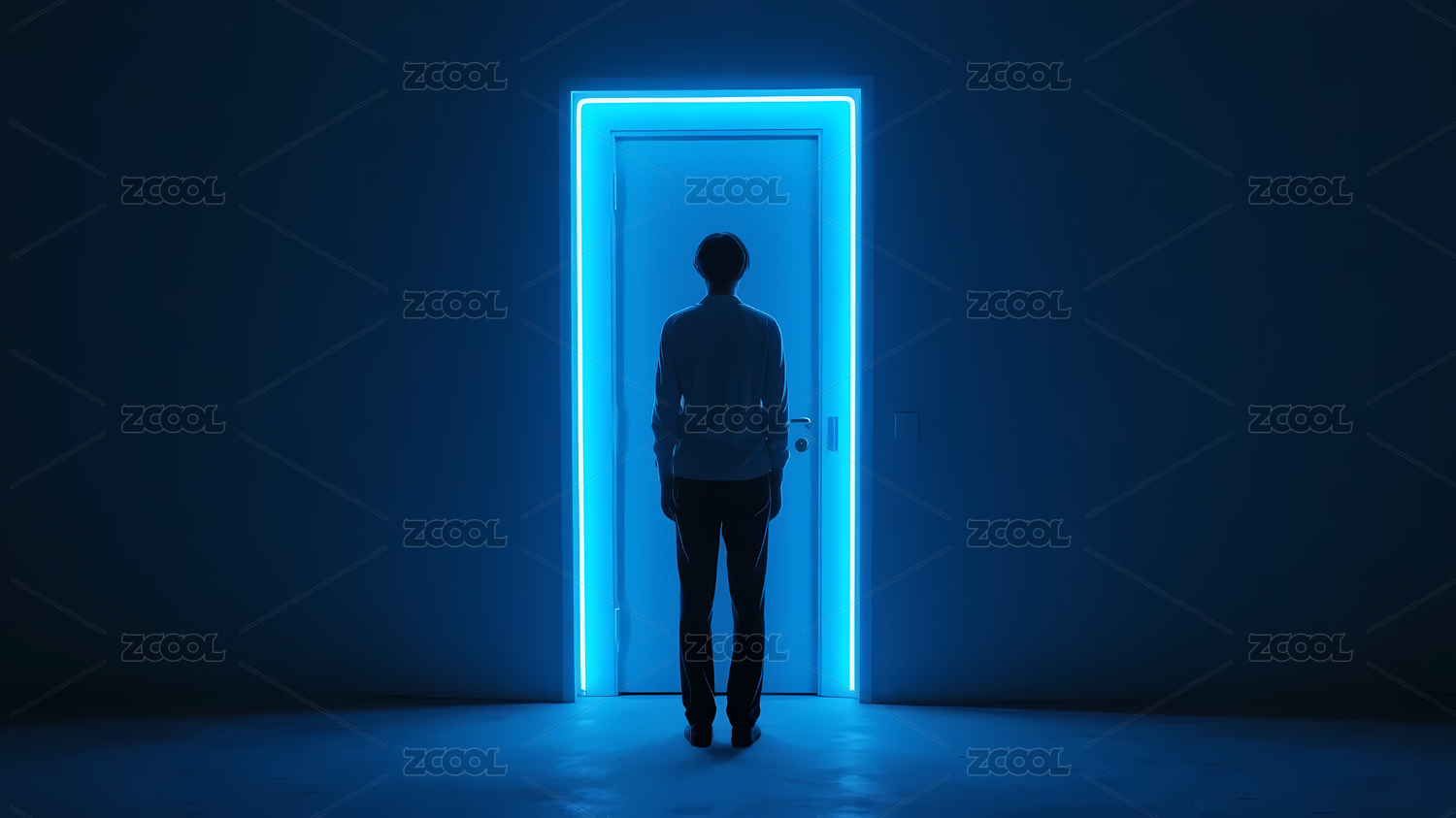 背景,图案,蓝色,对比,光线,神秘,人影,门口,希望,剪影