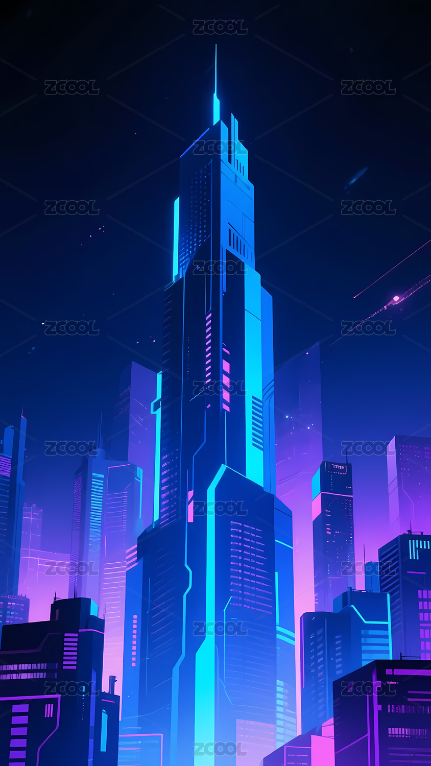 霓虹高楼夜景城市未来感
