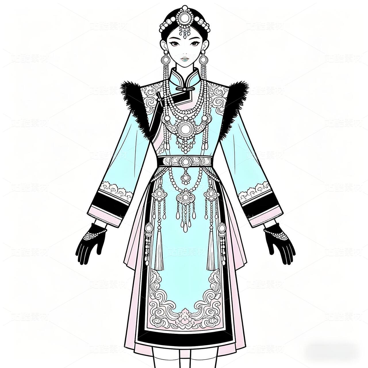瑶族服饰承载着深厚的民族文化,本次设计的儿童礼服以浅蓝与浅青为主色调,象征山水的灵动与纯净。服装采用对襟盘扣结构与层叠裙摆,缀以手工刺绣的八角花纹与云雷纹,致敬瑶族挑花技艺;银饰项圈与流苏腰链增添节日氛围,既保留马尾帽、绑腿等传统细节,又通过轻盈薄纱与现代剪裁提升实穿性。色彩对比鲜明,线条流畅婉转,展现儿童的天真与瑶族艺术的绚丽。设计旨在推动民族美育,让传统服饰走进当代生活,成为“行走的文化符号”。