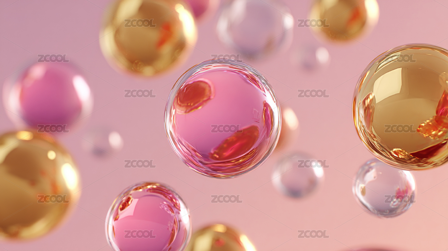 紫色与蓝色渐变气泡悬浮于柔和背景