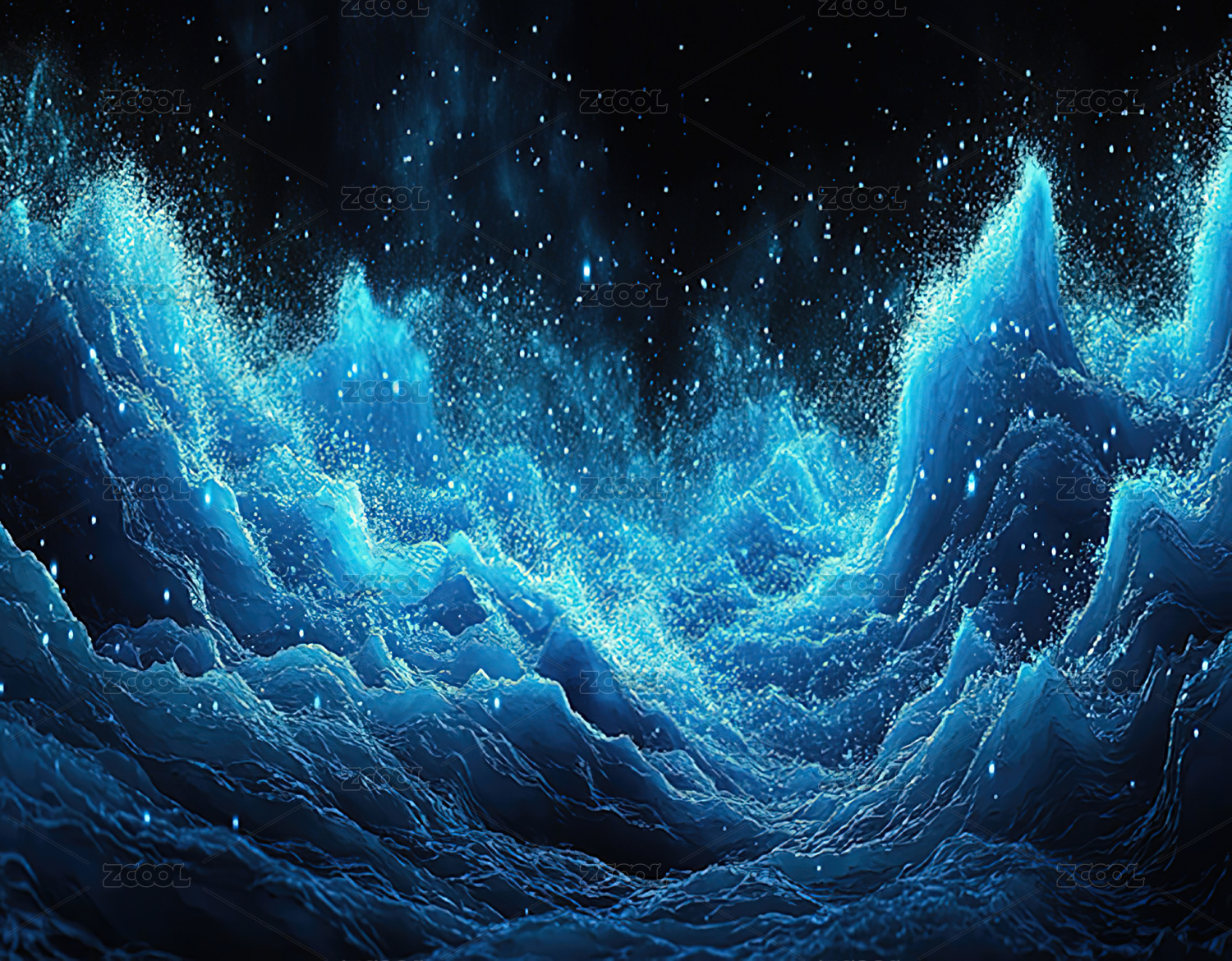 山水,山脉,河流,场景,数字,艺术,风格,山峰,青色,粒子