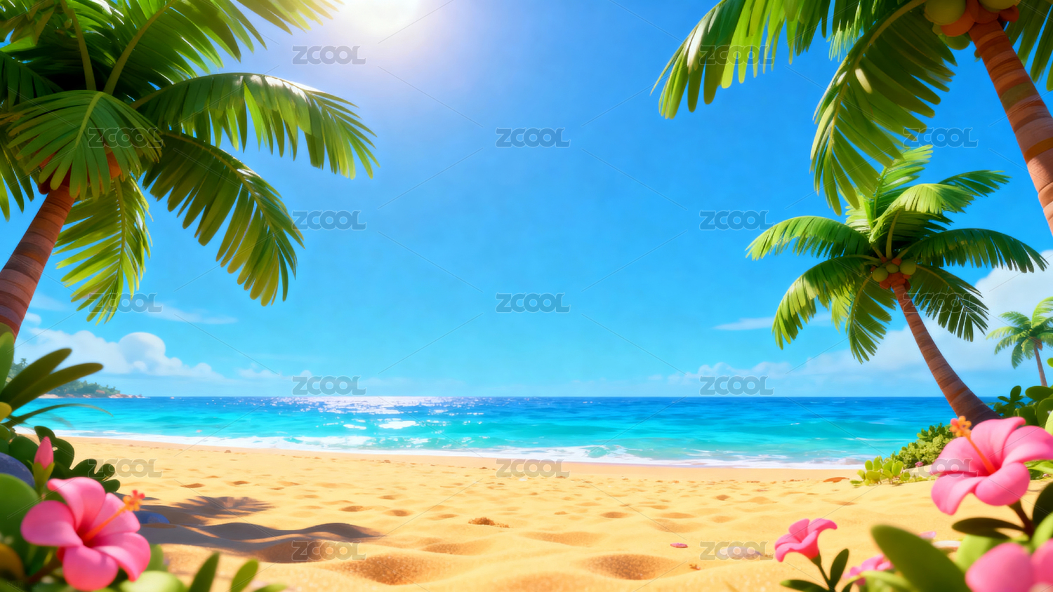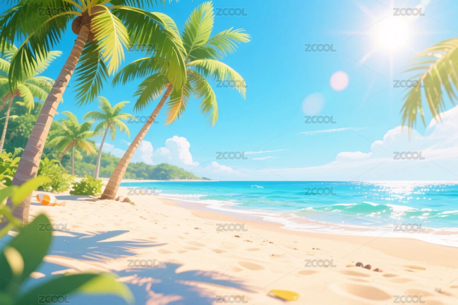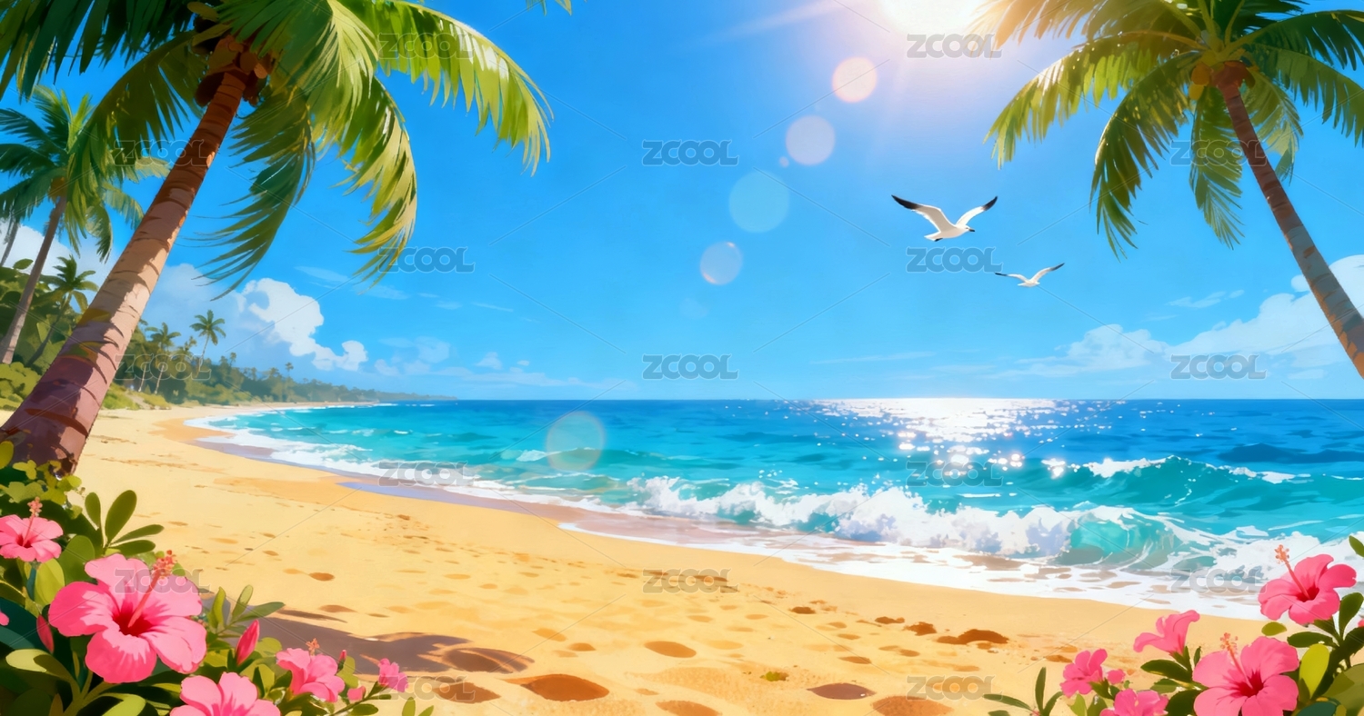 海滩明媚风海滨度假场景