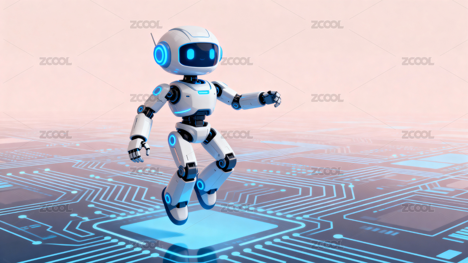 白色机器人渐变背景跳跃