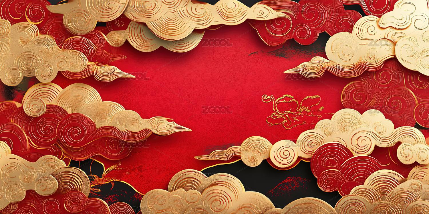 红色祥云装饰的节庆背景图