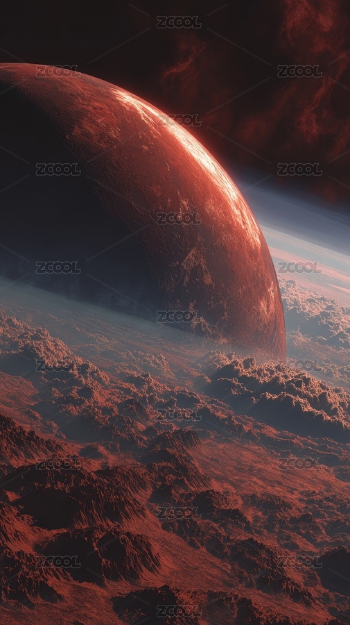 红色星球,行星表面,山脉地形,宇宙空间,大气层,天体景观,科幻场景,遥远星球,自然地貌,太空探索