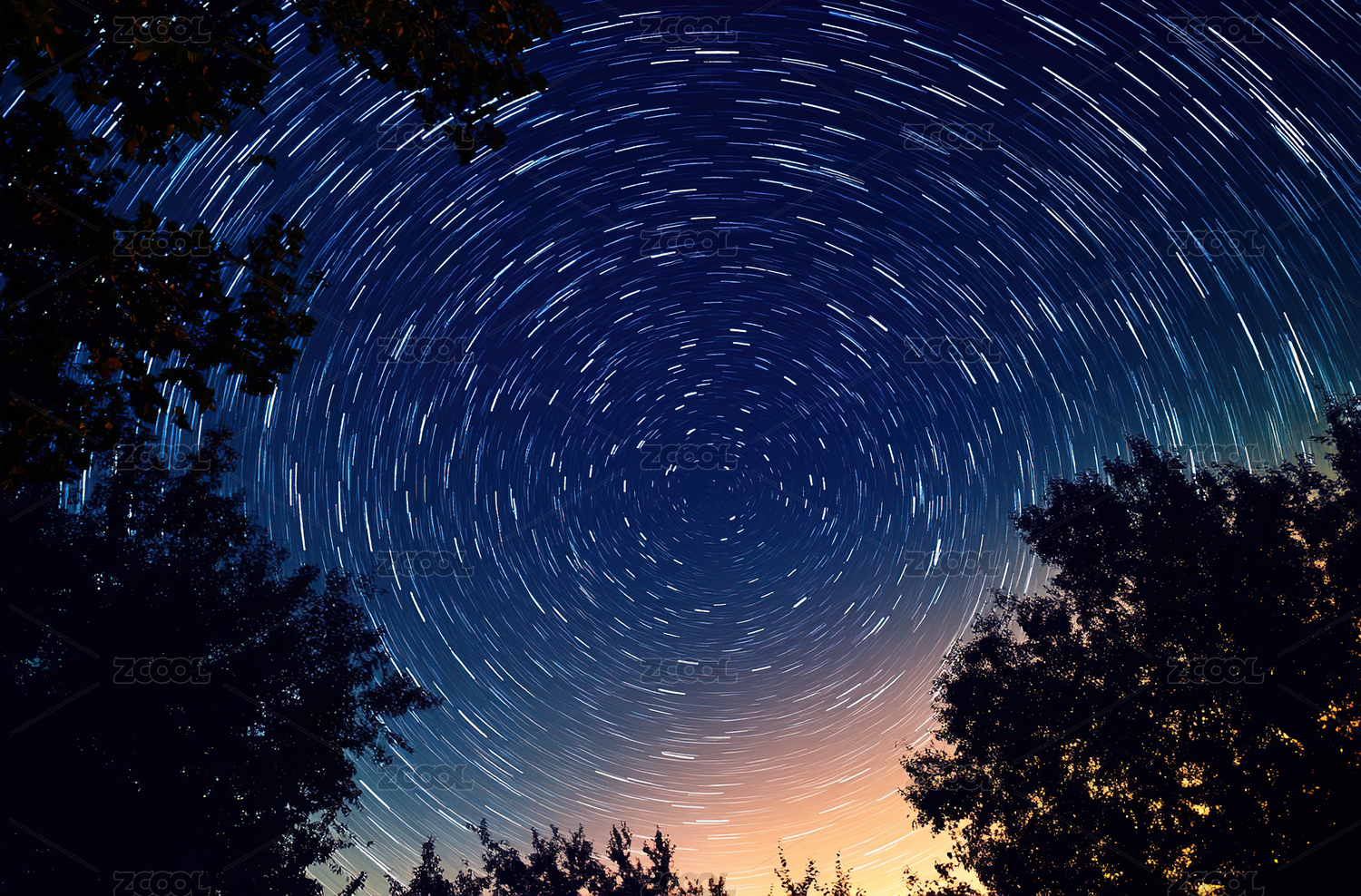 自然,美丽,户外,圆形,蓝色,夜空,黑暗,星轨,旋转,天文