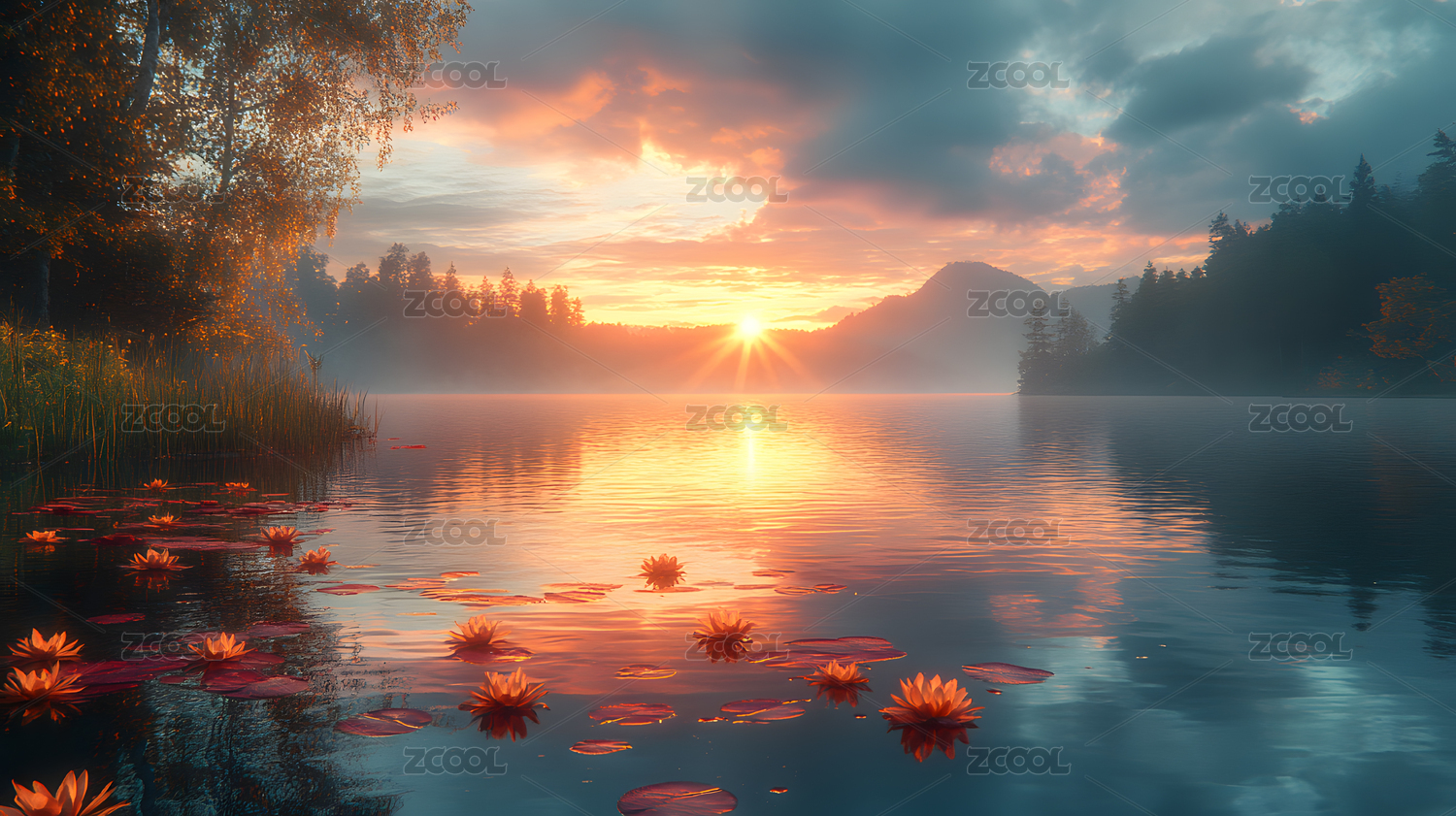 橙色,光影,黄色,户外,自然,宁静,朦胧,静谧,湖水,枫叶