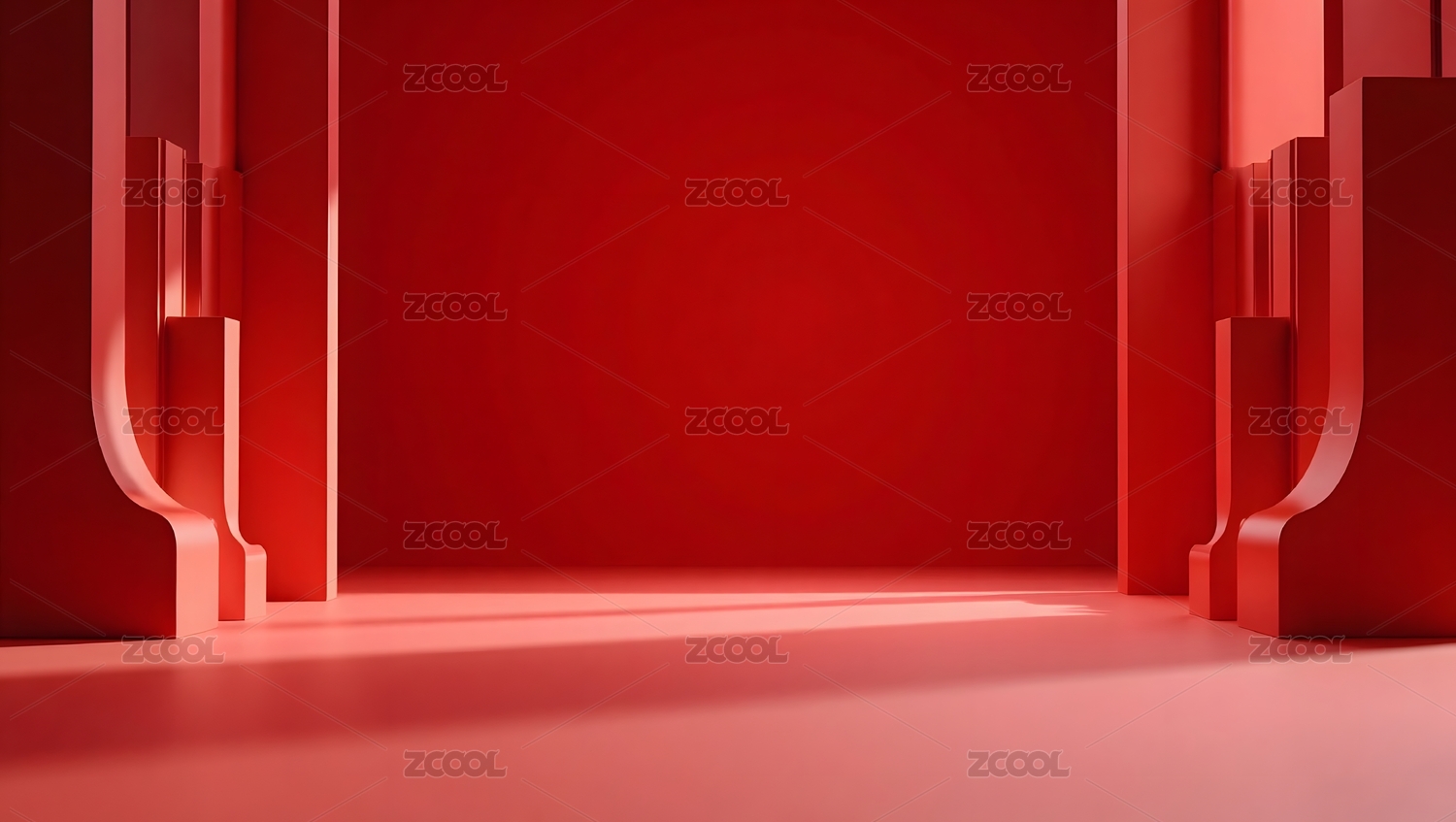 3D渲染红色几何通道人造空间背景