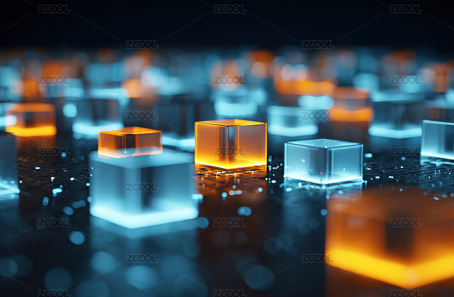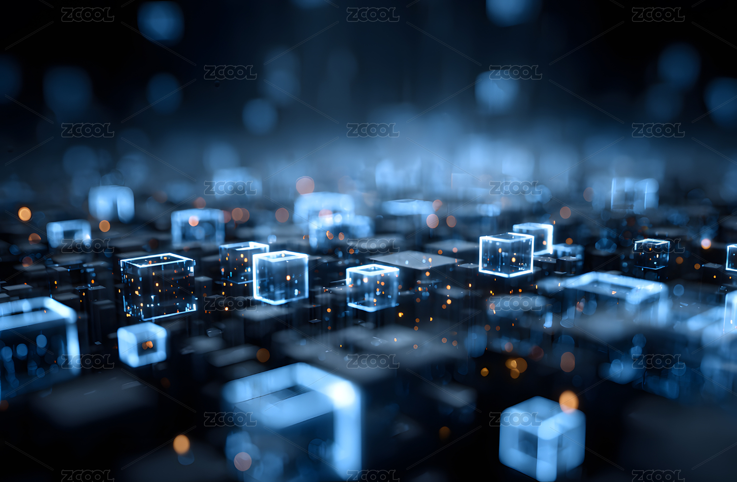蓝色发光立方体科技场景