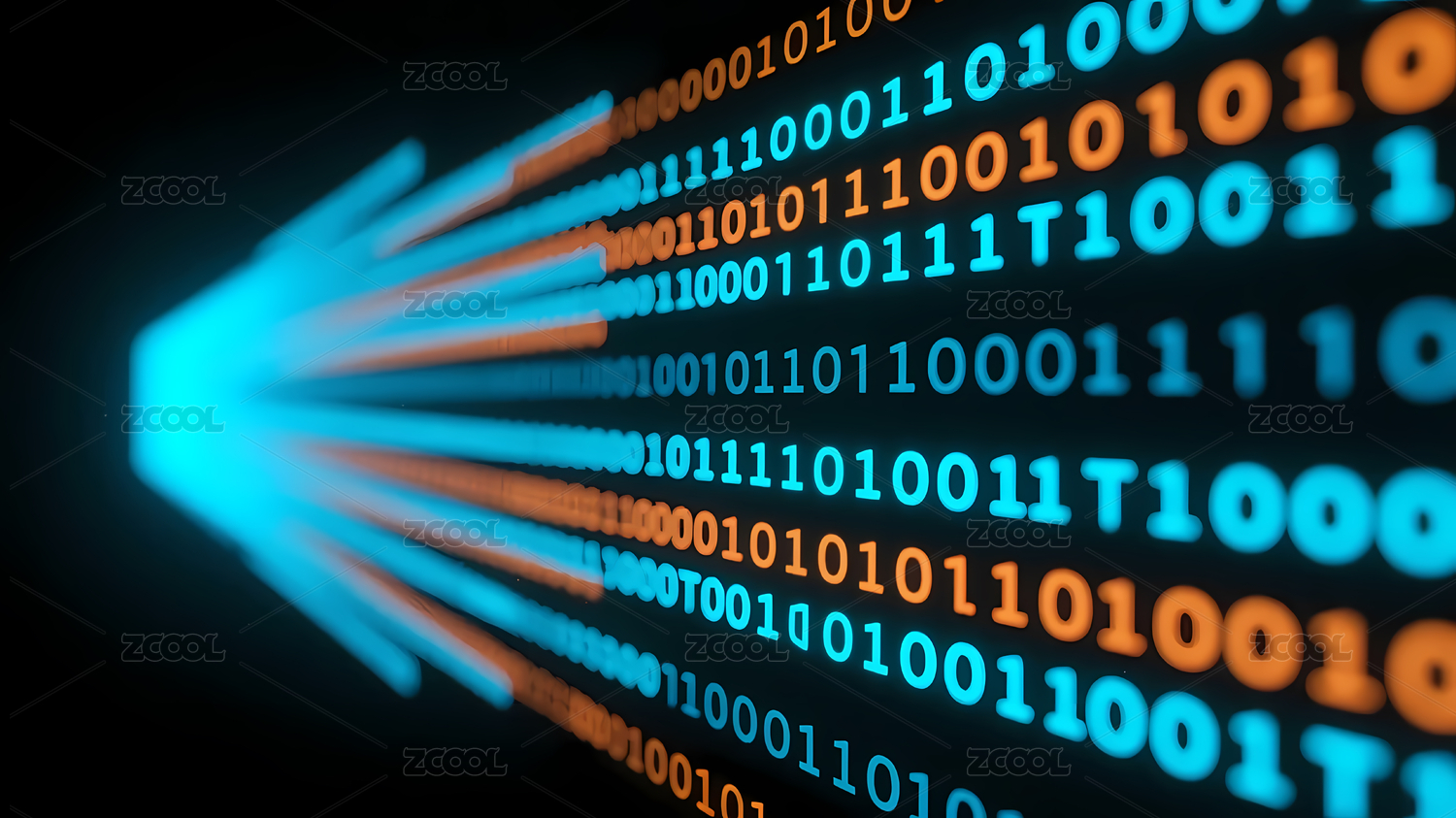 蓝绿色立体玻璃条块和代码向四周扩散背景