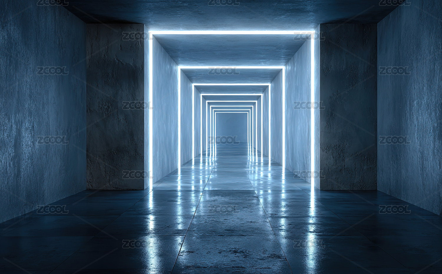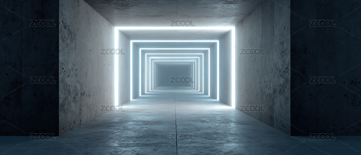 混凝土隧道中的发光门框