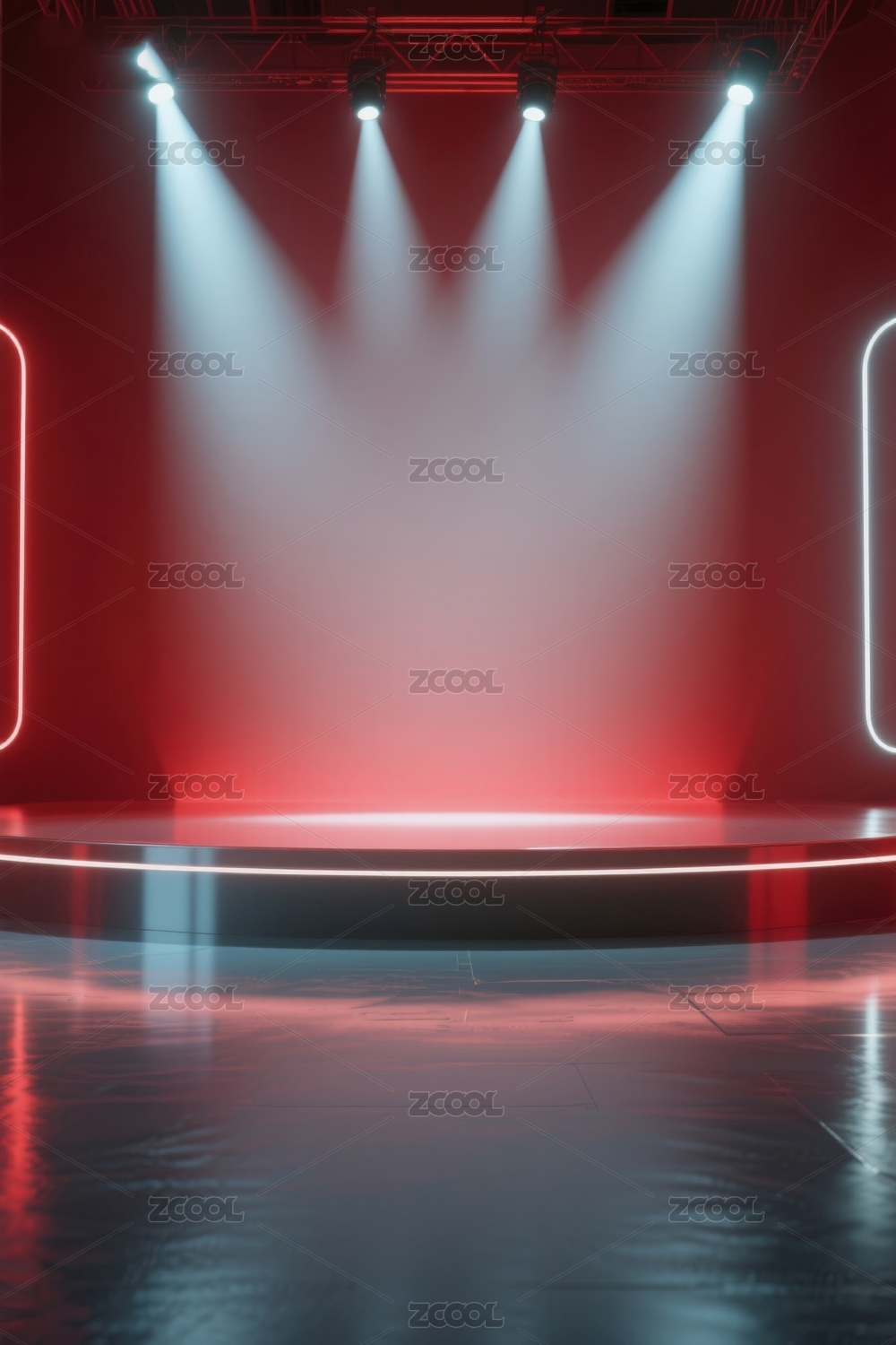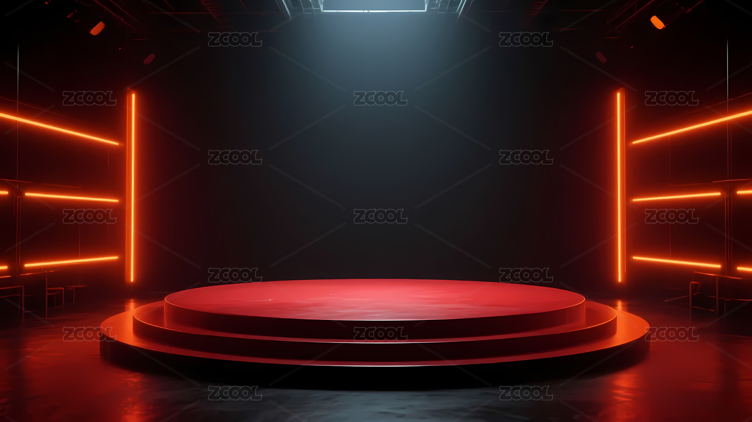 红色聚光灯下的圆形展台