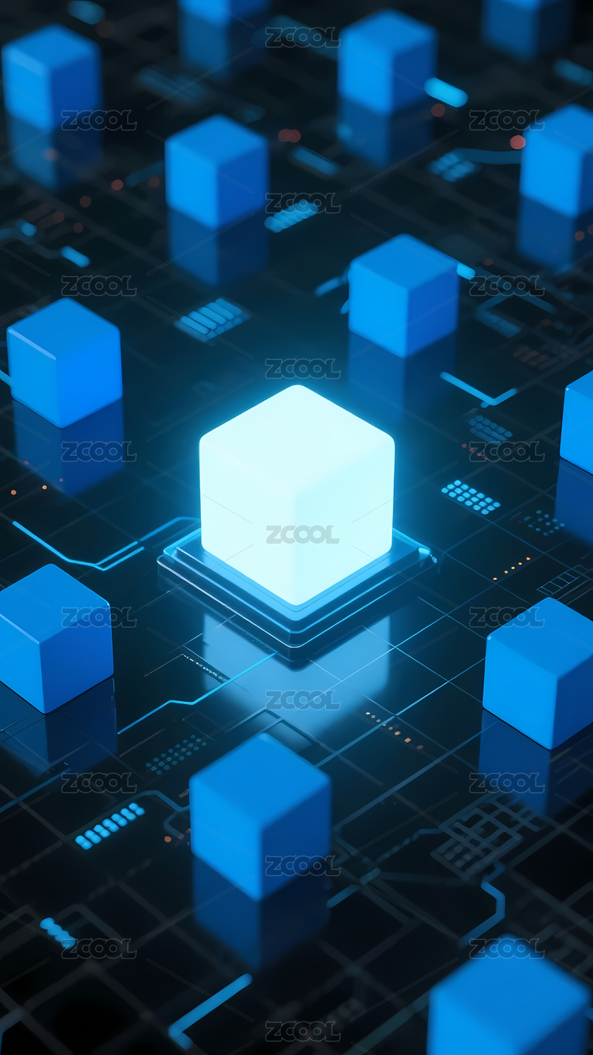 蓝色,发光,几何,科技,图案,深色,立方体,环绕,六边形,网格