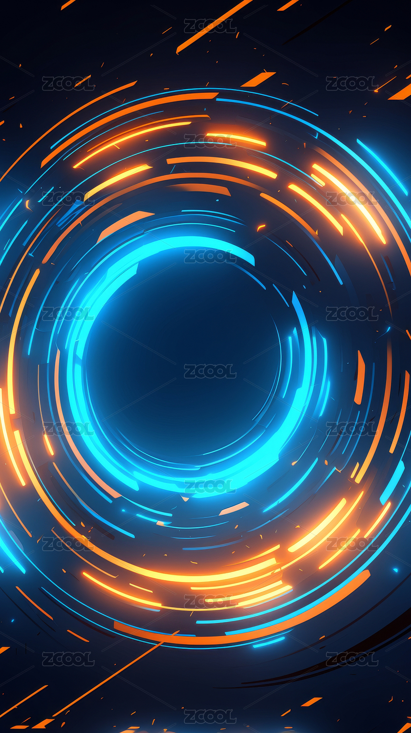 蓝色,渐变,橙色,线条,深色,动感,圆,形,交错,鲜明