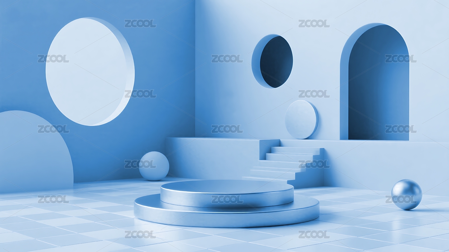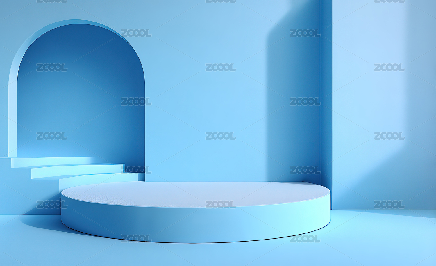 抽象,光影,蓝色,平台,圆形,曲线,设计,艺术,视觉,现代