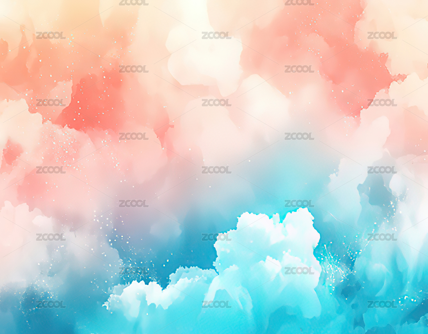 蓝粉紫色水彩手绘渐变梦幻浪漫背景