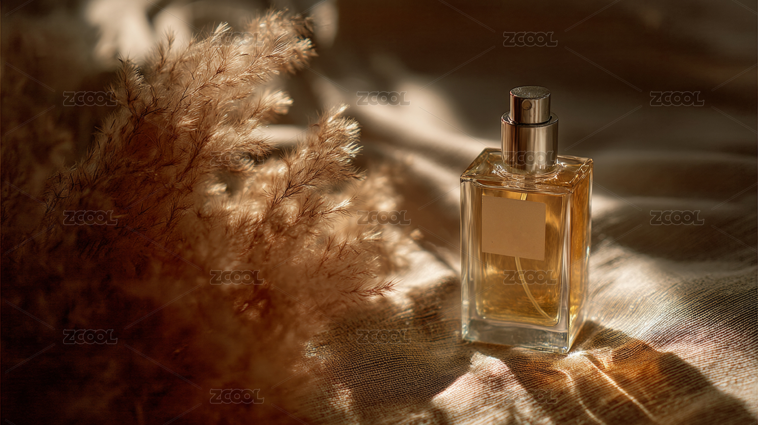香水瓶置于细腻沙地上