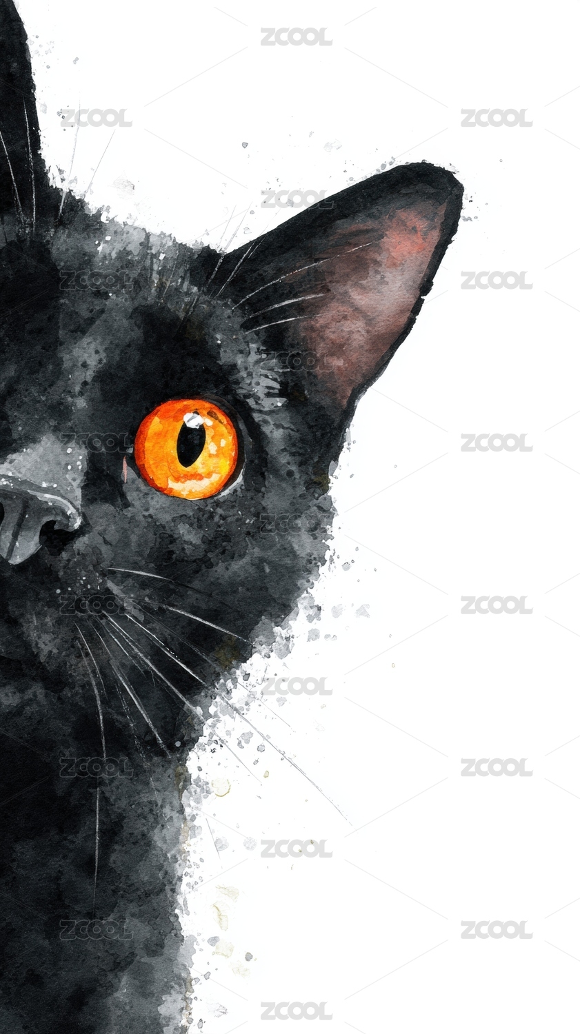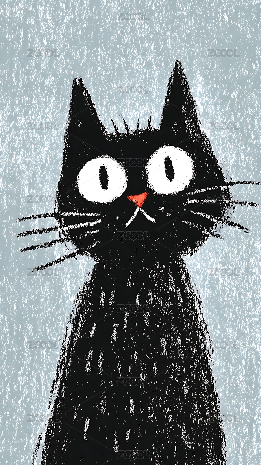 艺术,视觉,插画,黑猫,大眼,可爱,动物,眼睛,毛发,表情