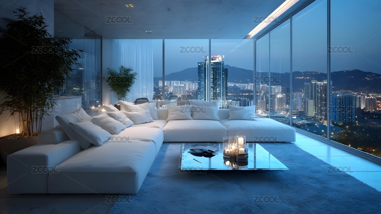 现代都市夜景客厅