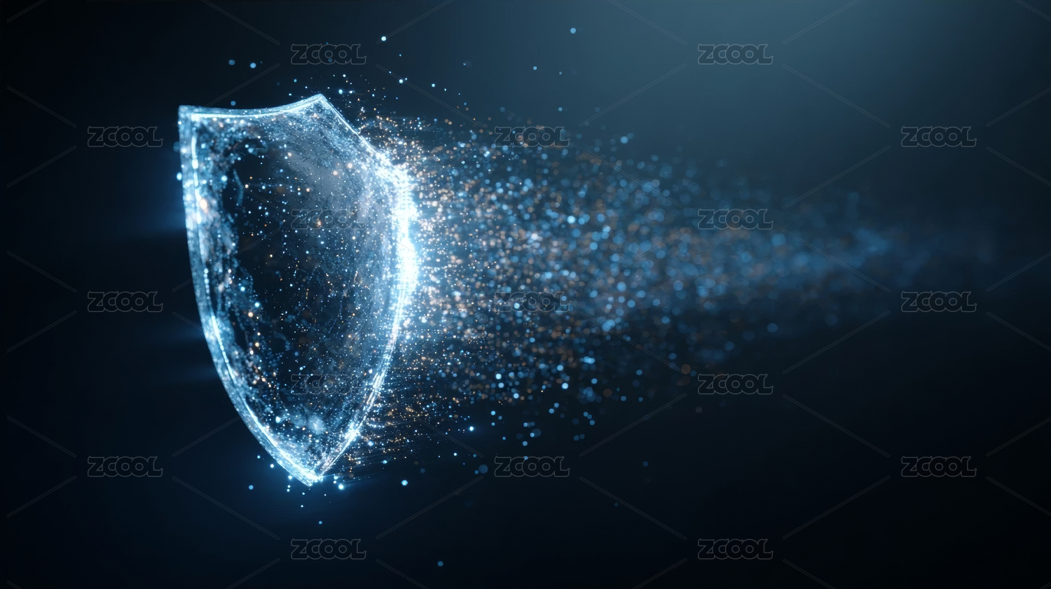 数字盾牌闪耀蓝色光点的科技防护场景