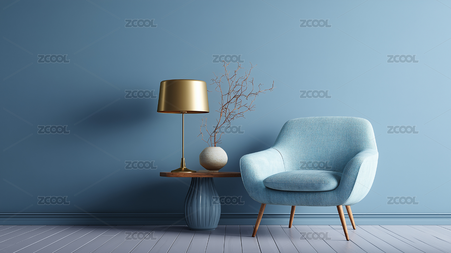 蓝墙边的单人沙发