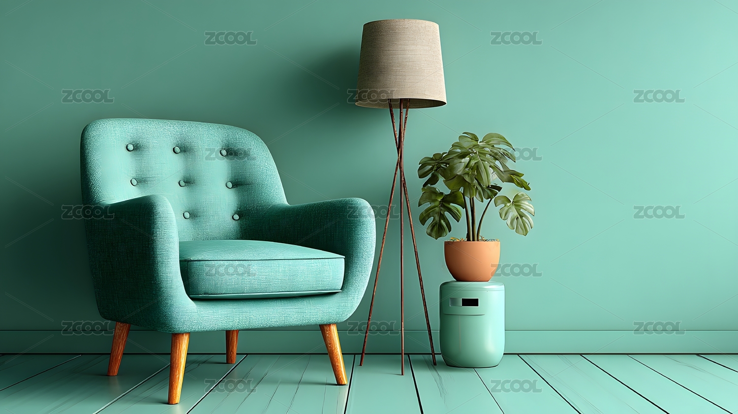 绿墙软椅配落地灯打造简约家居