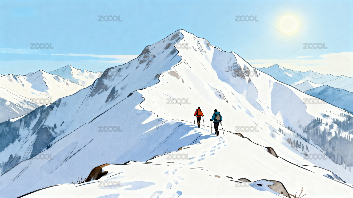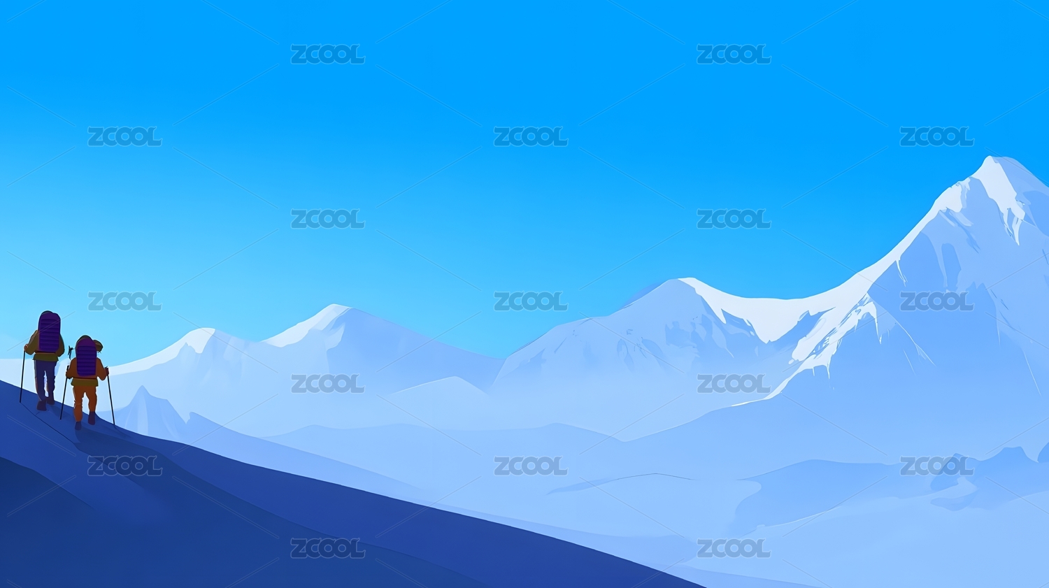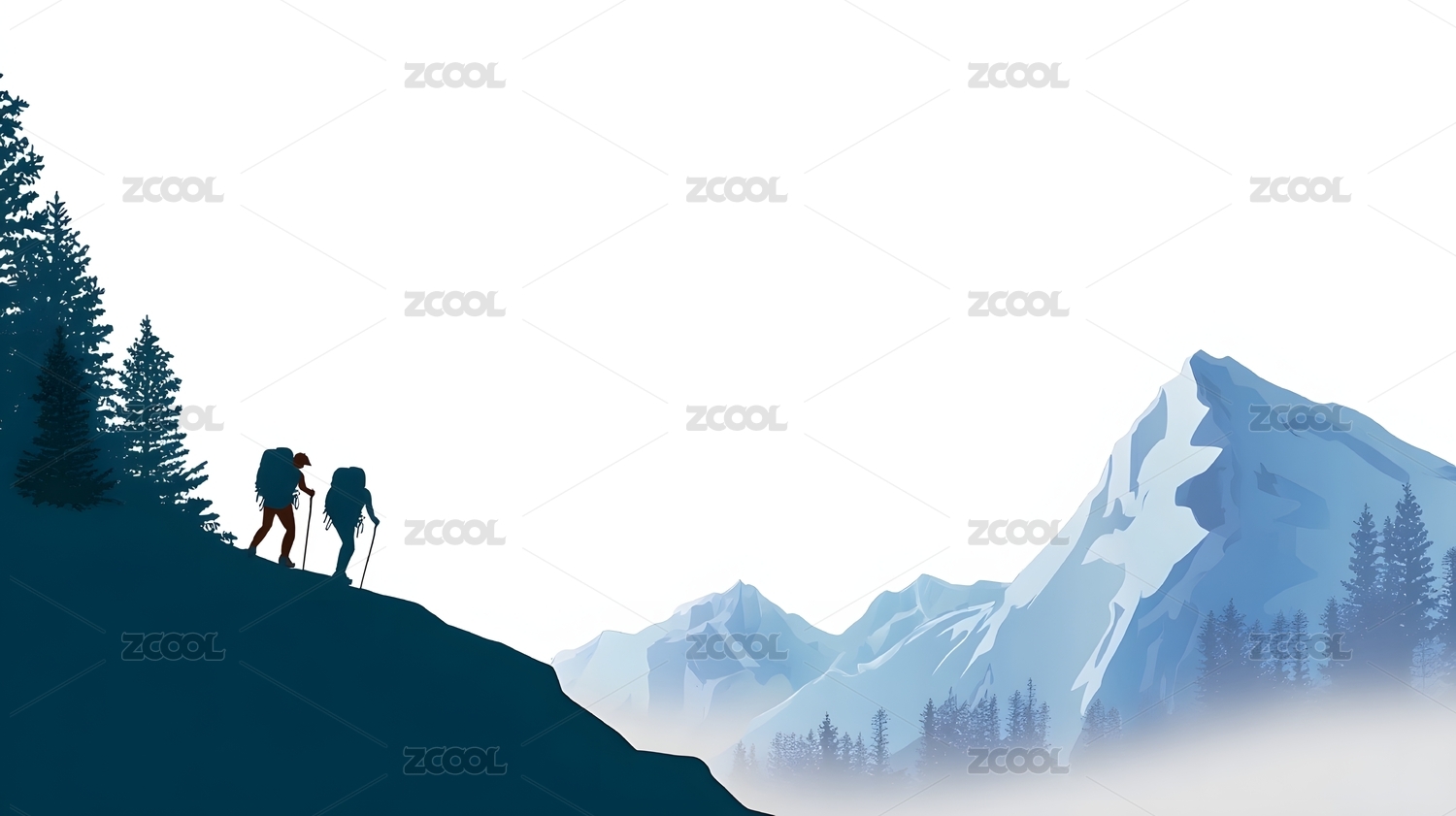 登山,剪影,山脉,风景,插画,自然,户外,山水,天空,蓝天