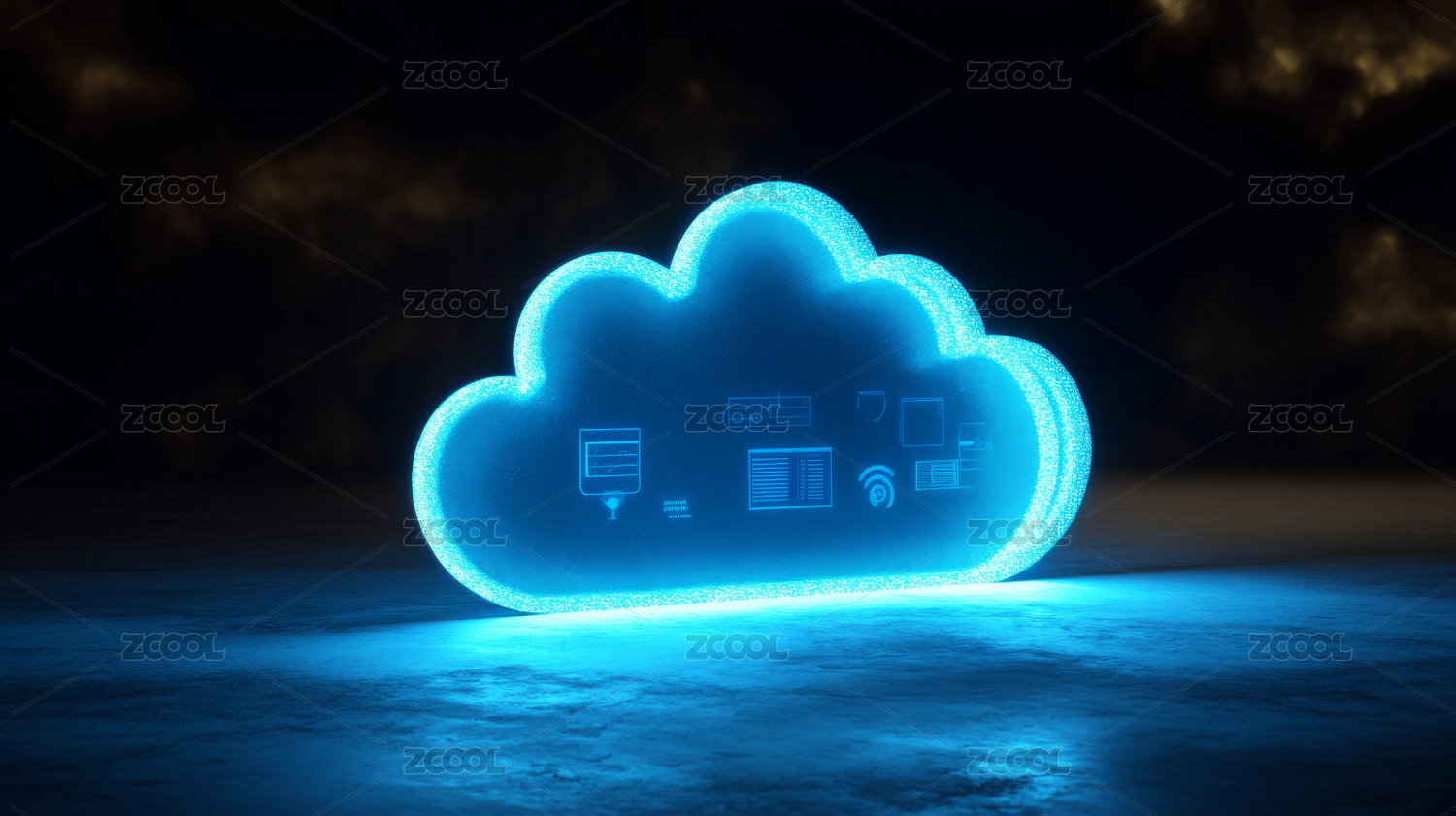 3D彩色云端网络安全科技背景