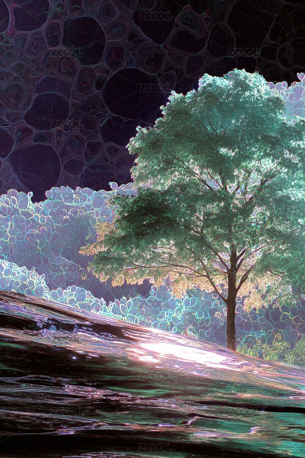 科技绿色环保量子信息树3D卡通立体背景