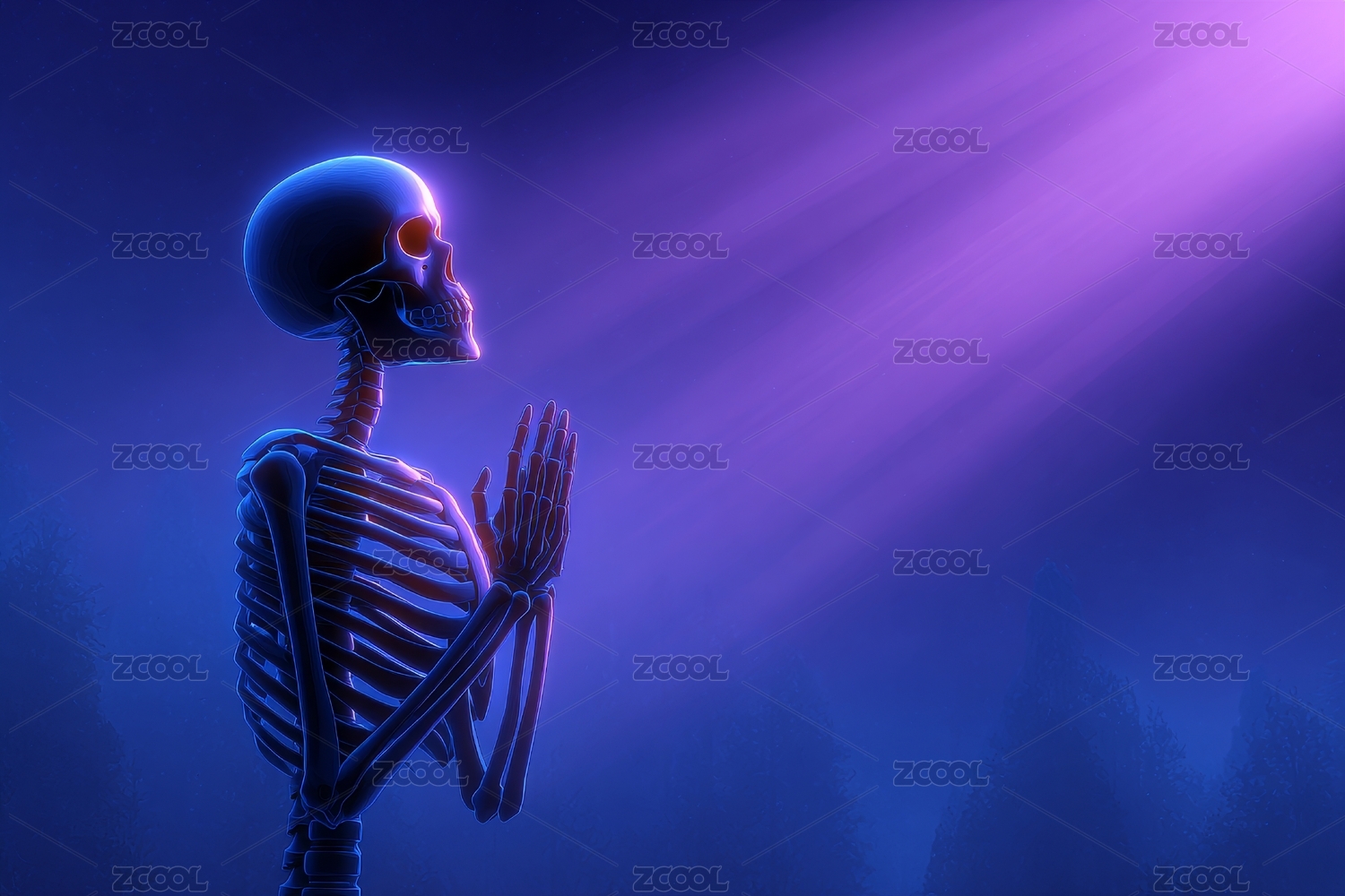 骷髅祈祷光芒下