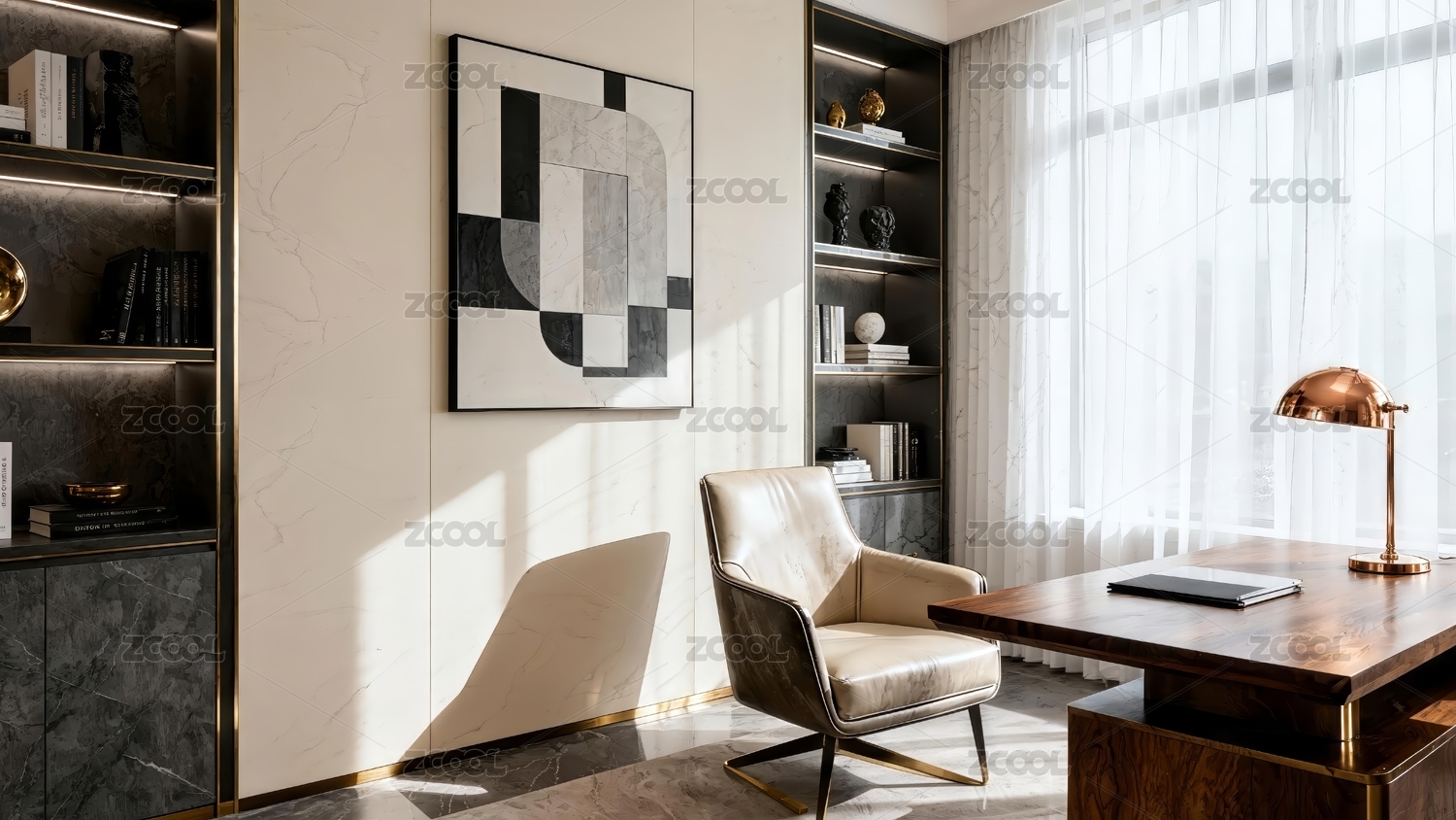 现代极简现代家庭办公室场景
