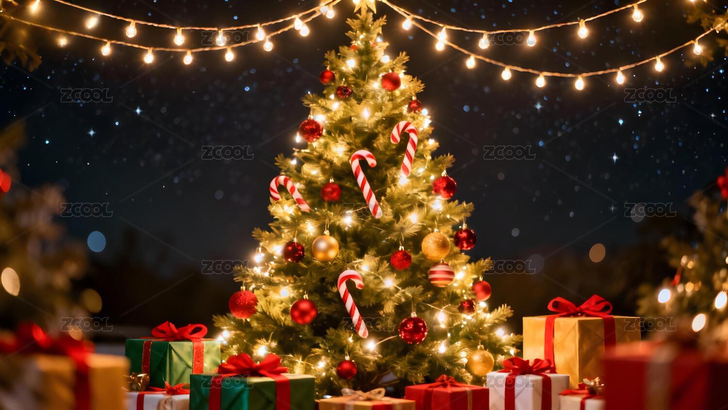 室内圣诞树和漂亮的圣诞礼物装饰圣诞节日