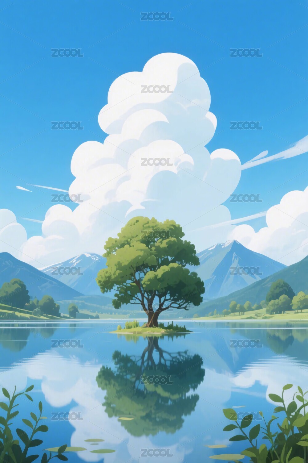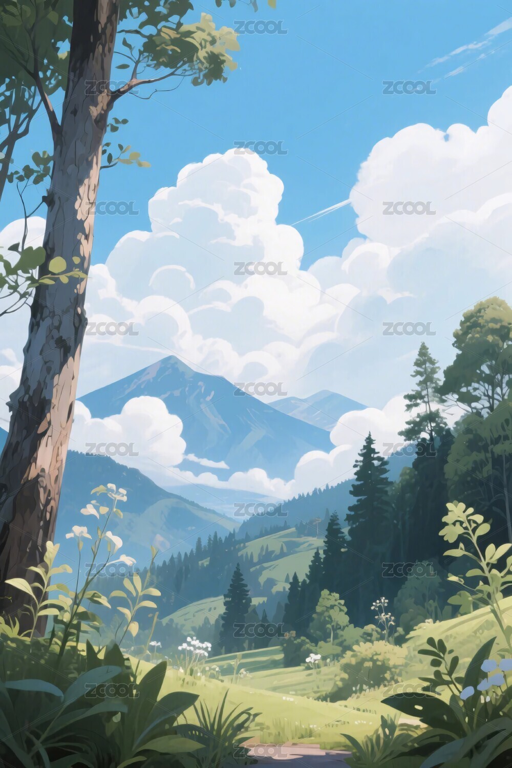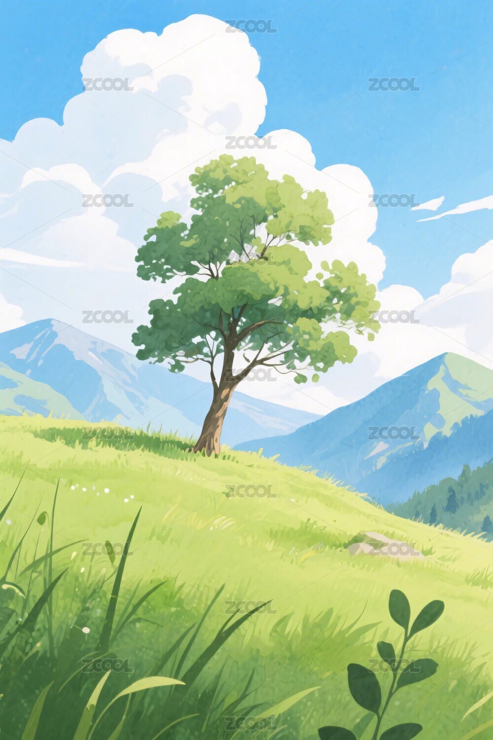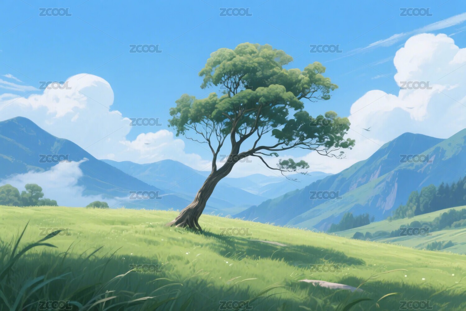 枯树,草地,山峰,蓝天,白云,自然风景,山水,草地风景,山间风景,空白背景