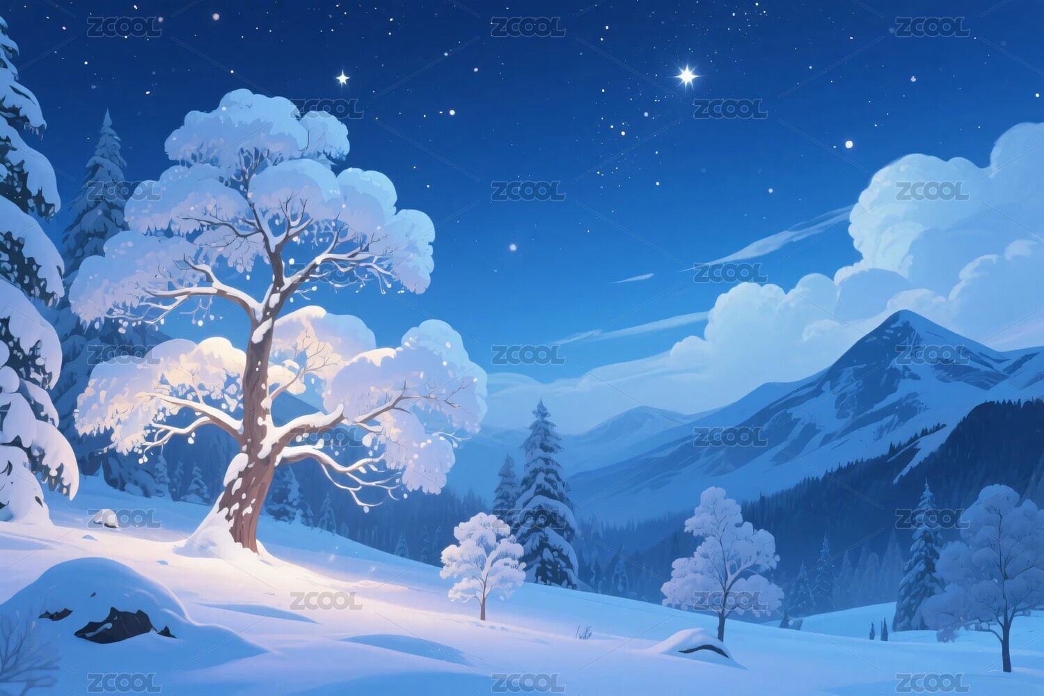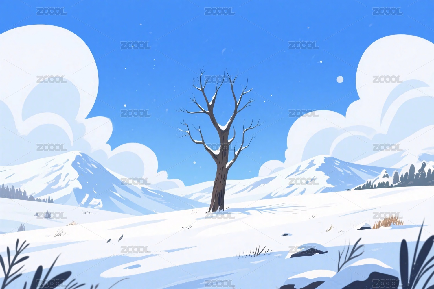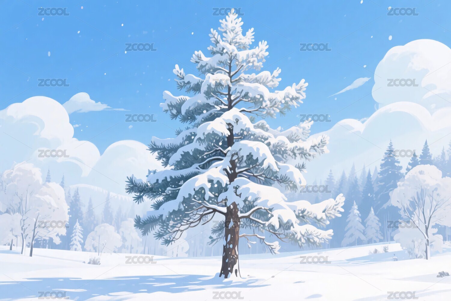 雪景,冬季,树木,雪树,蓝天,森林,白云,风景,插画,矢量
