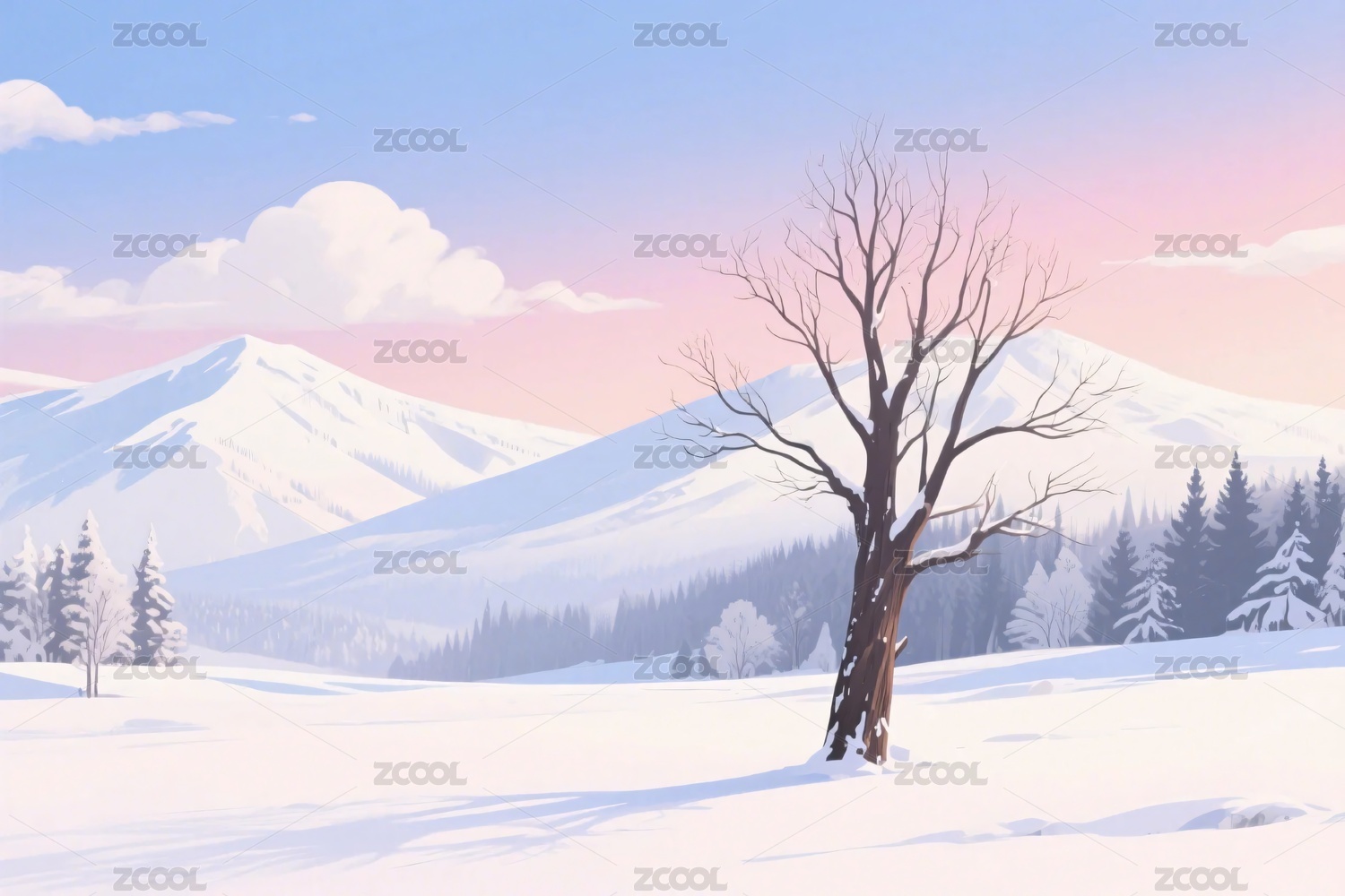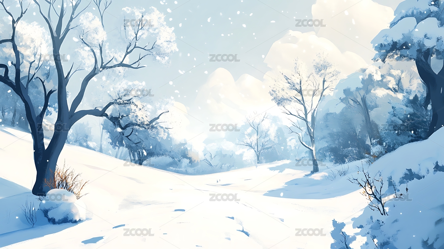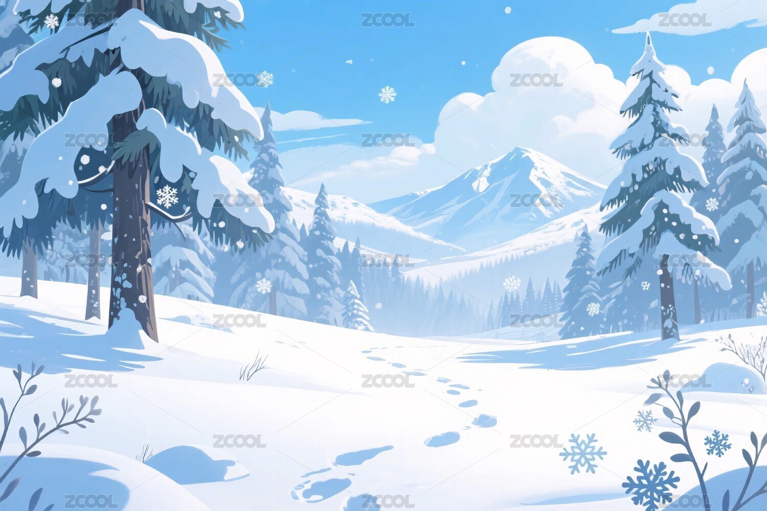 雪景,冬季,树木,雪树,蓝天,森林,白云,风景,插画,矢量